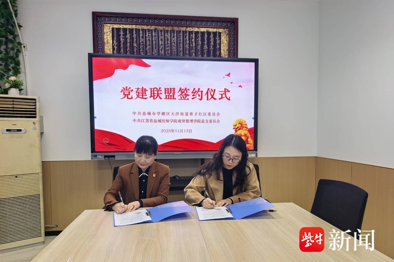为深入贯彻落实新时代党的建设总要求,构建“资源共享、优势互补、协同发展”的基层党建新格局,11月13日上午,中共盐城市亭湖区大洋街道育才社区委员会与中共江苏省盐城技师学院商贸管理学院总支委员会在盐城技师学院举行党建联盟签约仪式。双方党组织负责人及党员代表参加活动,共同见证这一校社联动、共谋发展的新起点。