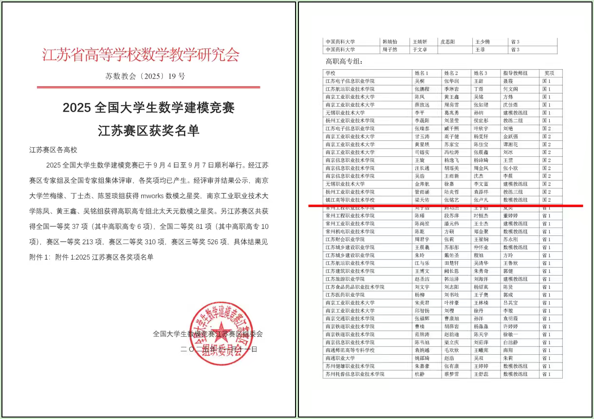 连续两年登榜!镇江高职校创下五年制高职数模国赛唯一获奖纪录