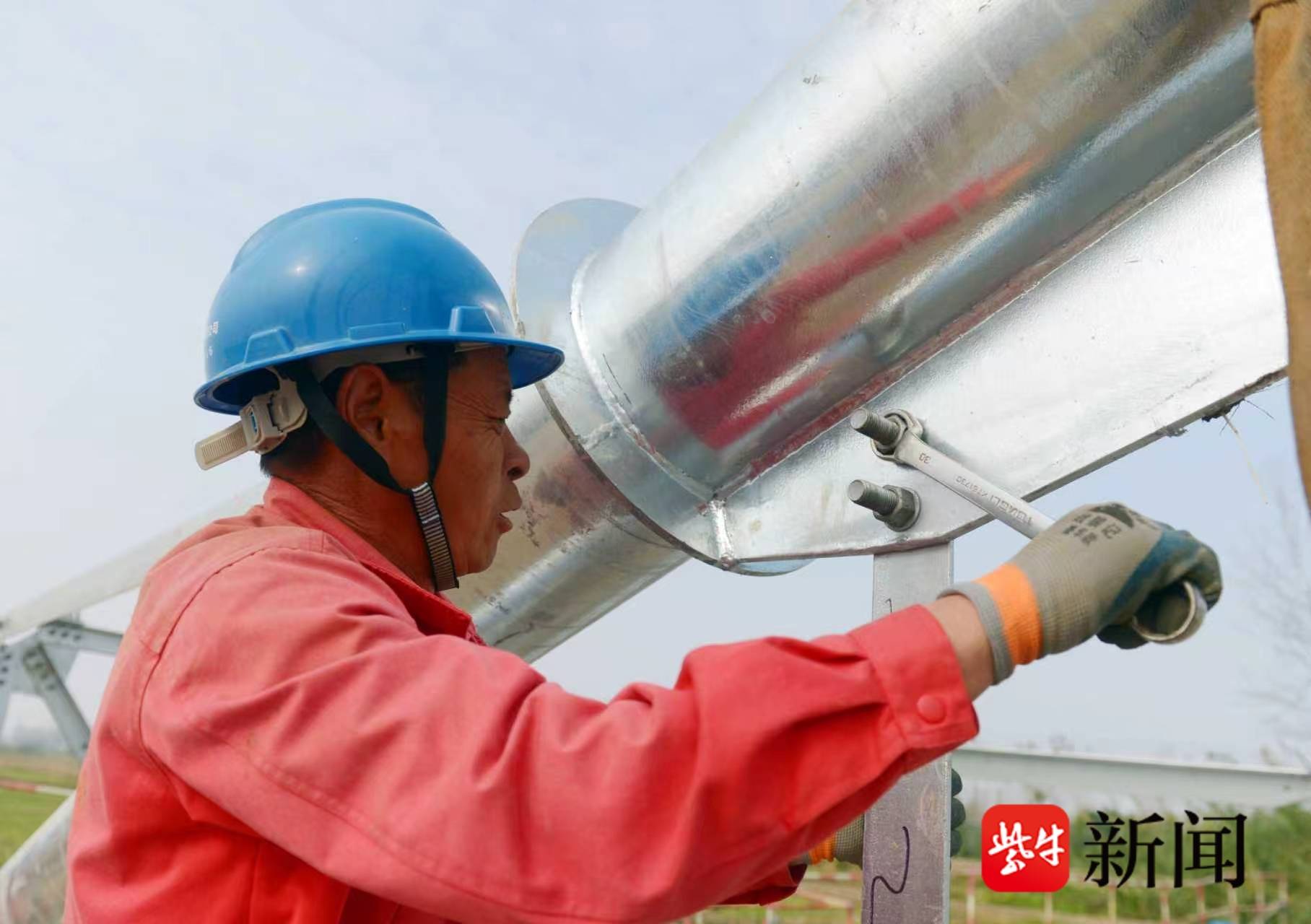江苏两座跨淮河最高输电铁塔在盐城封顶