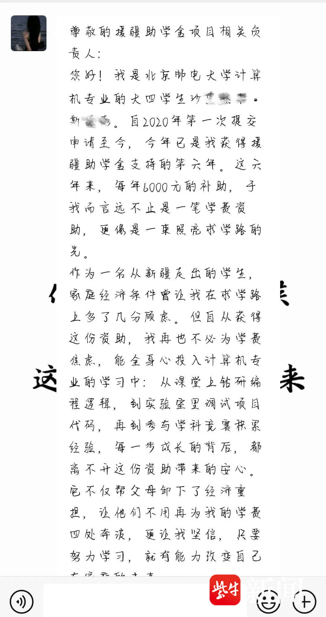 家住英塔木镇英塔木村的小沙现就读于北京邮电大学,她也是援疆助学金的受益者之一。自2020年首次申请以来,这份资助已伴随她走过六个求学春秋。即将完成大学学业的小沙,早已定下回乡发展的目标,计划投身信息技术行业,用专业能力为家乡建设添砖加瓦。