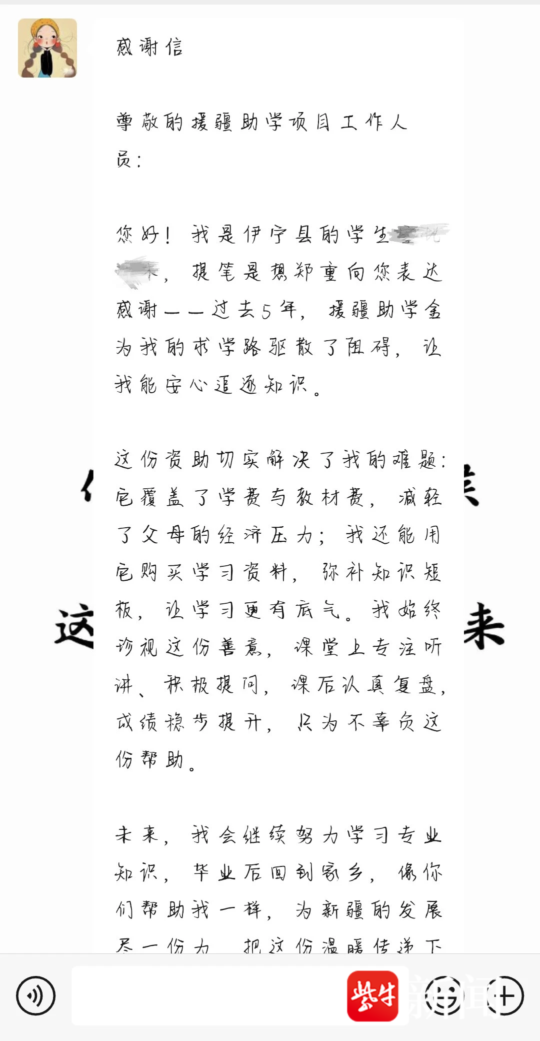 “援疆助学金已收到,感谢党和国家的好政策!”“感谢南通援疆领导的关心,感谢政府和老师们的辛苦付出!”近日,伊宁县援疆助学交流群里,一句句发自肺腑的真挚感谢刷屏不断,字里行间满是孩子们难以言表的喜悦与感恩。据悉,伊宁县2025年第一批援疆助学金已顺利发放,191.1万元的资金精准惠及369名大学生,目前第二批援疆助学金正有条不紊推进,为杏乡学子的求学梦想持续注入暖流。