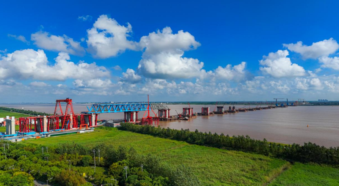 北沿江高铁江苏段全线控制性工程——崇启公铁大桥