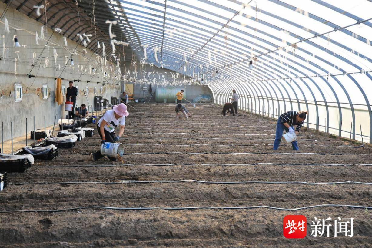 与田间定植的繁忙呼应,岗埠农场高效农业示范园内,14个大棚正孕育着近19万颗百合种球。工作人员先将催芽后的种球从有机质中分拣,精准埋入垄间,再覆盖土壤、接通滴灌水管,一系列操作娴熟规范。为保障生长环境,园区夏季便完成大棚杀菌消毒,以有机质肥料打底,从源头筑牢作物生长基础。