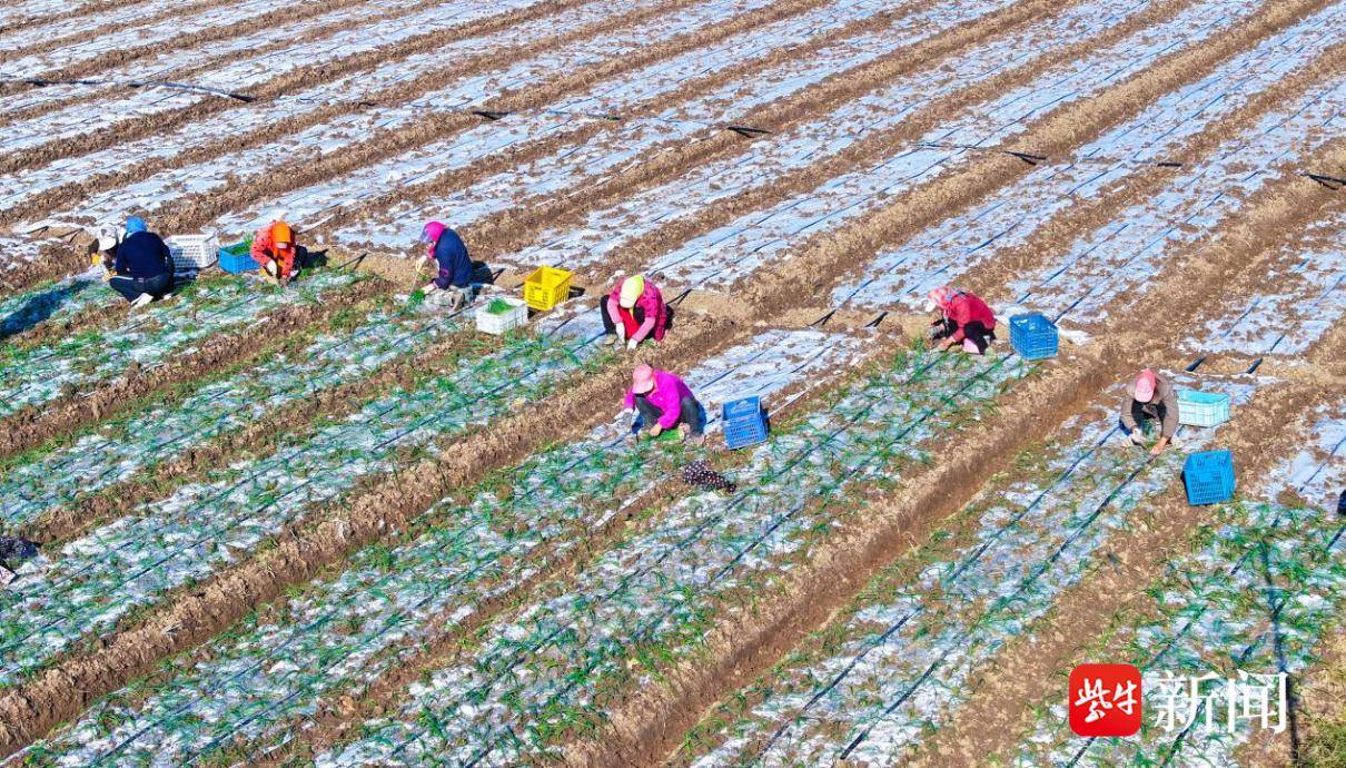 定植背后是一套严谨的标准化农艺流程。前期土地需经过整地作畦、铺设滴灌带、封闭化除、覆盖地膜四道“预处理”工序,为幼苗打造疏松平整、保温保墒的生长环境。栽种环节更是严守15×15公分的行距与株距标准,每亩定植约22500棵幼苗,确保植株获得均衡的光照与养分。通过集成滴灌、覆膜等技术,农场构建起“精准育苗—高效定植— 科学管理”的现代化农业闭环,保障幼苗安全越冬,预计明年5月亩产量可达一万斤左右。