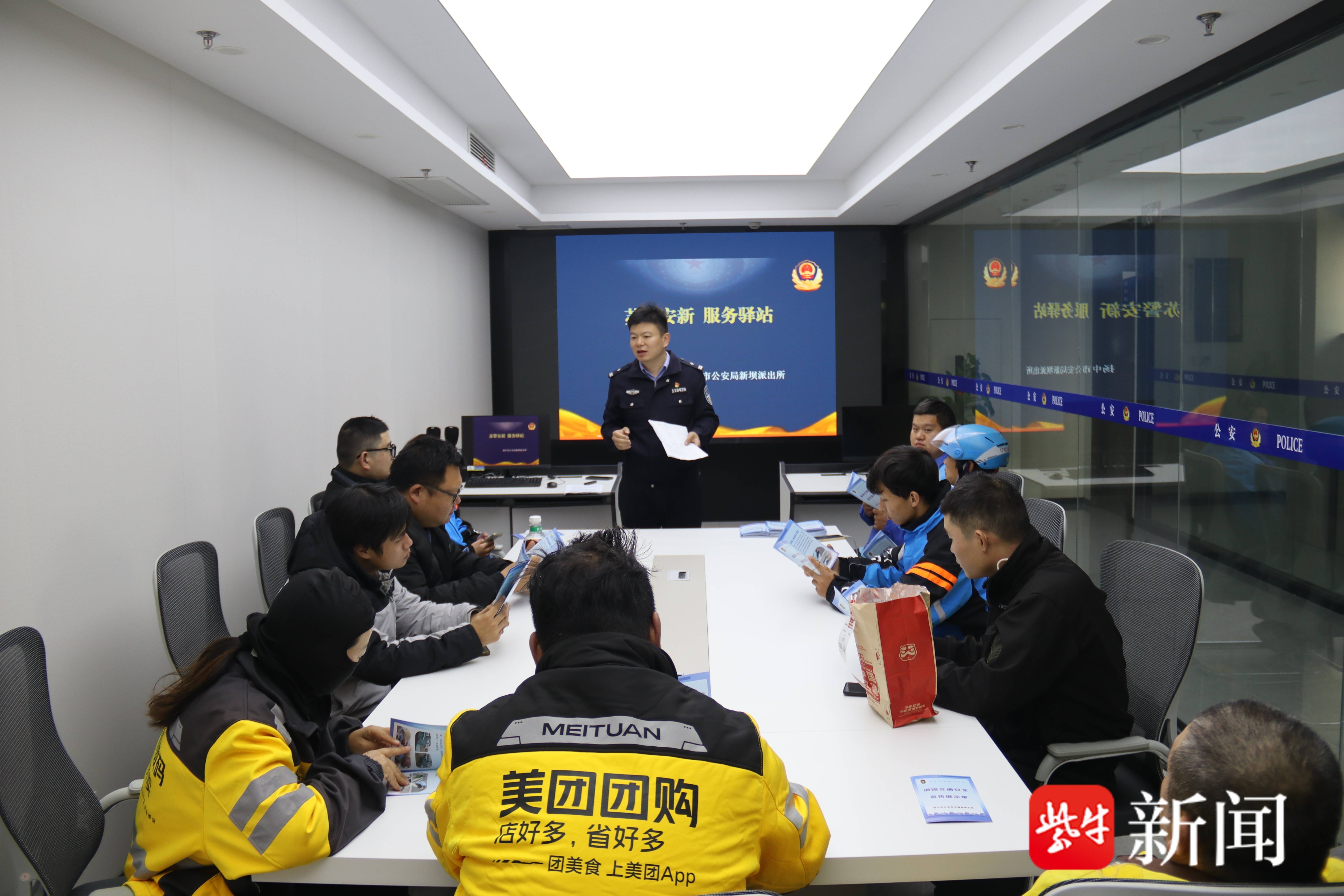 扬子晚报网11月16日讯(通讯员 林涵 方皓珪 记者 姜天圣)为精准服务外卖员、快递员、网约车驾驶员等新就业群体,切实提升其法治意识和安全防护能力,近日,镇江市新坝派出所充分利用吾悦广场警务站苏警安新服务驿站阵地优势,面向辖区外卖员开展专题法制宣传活动,将反诈知识与交通安全常识送到户外劳动者“身边”“心间”。
