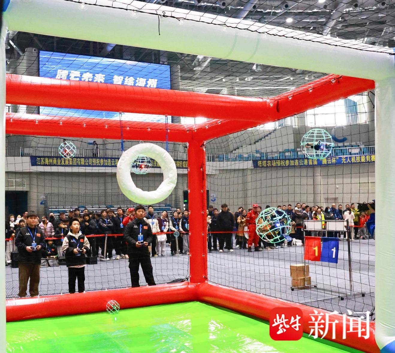 山海相映间,“翼”展新图景。11月15日,以“腾云未来,智绘海州”为主题的连云港首届“腾云杯”无人机技能竞赛在海州体育馆(莲花馆)圆满收官。这场集专业性、观赏性与互动性于一体的科技盛宴,设置航拍创作、无人机足球、穿越机竞速三大核心项目,吸引全市数百名无人机爱好者、专业飞手及高校学子同台竞技,免费开放的观赛通道人气爆棚,千余名市民到场见证“科技+运动”的魅力碰撞。