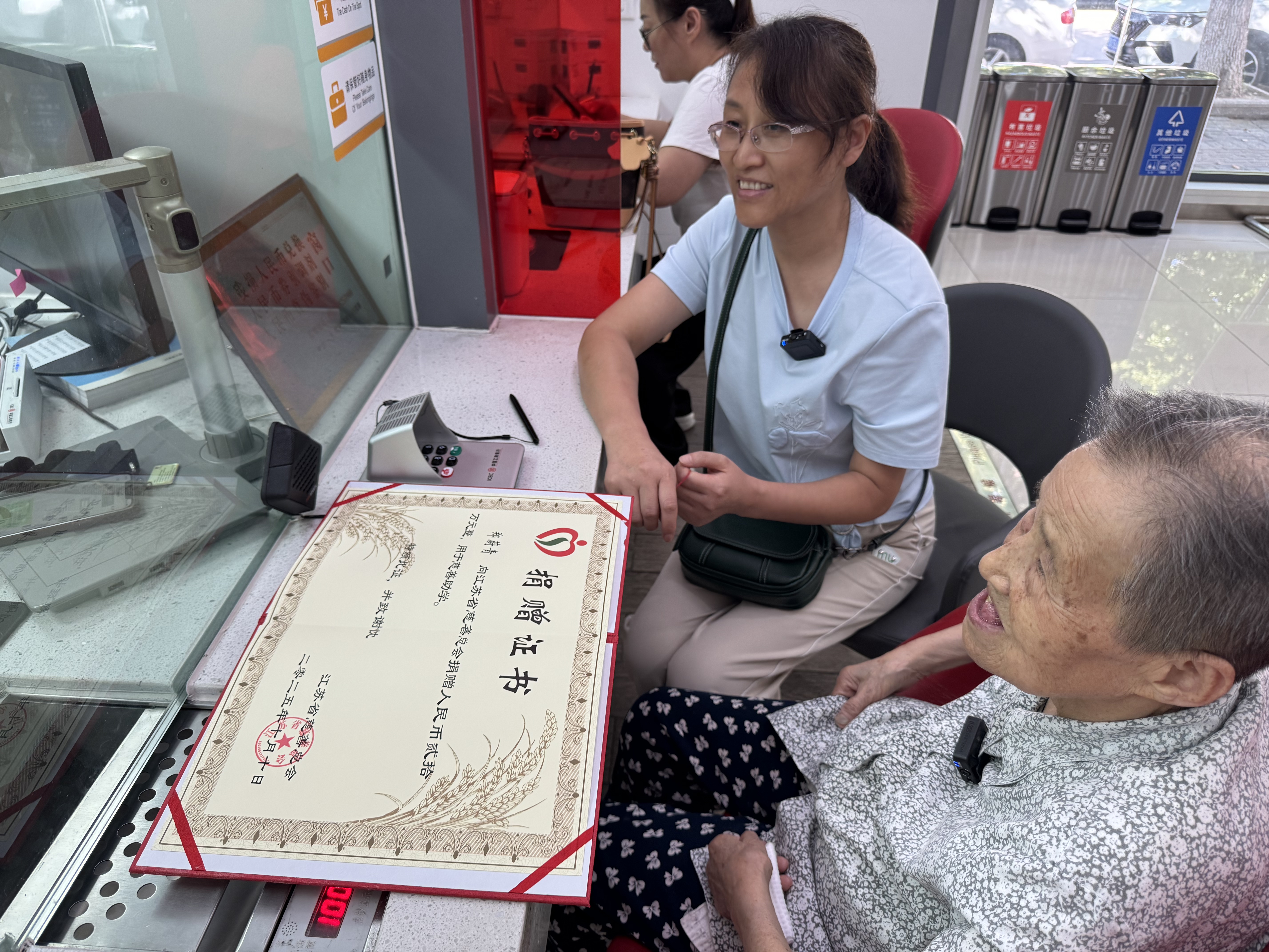 郑奶奶到银行,把20万捐赠给阳光学子们