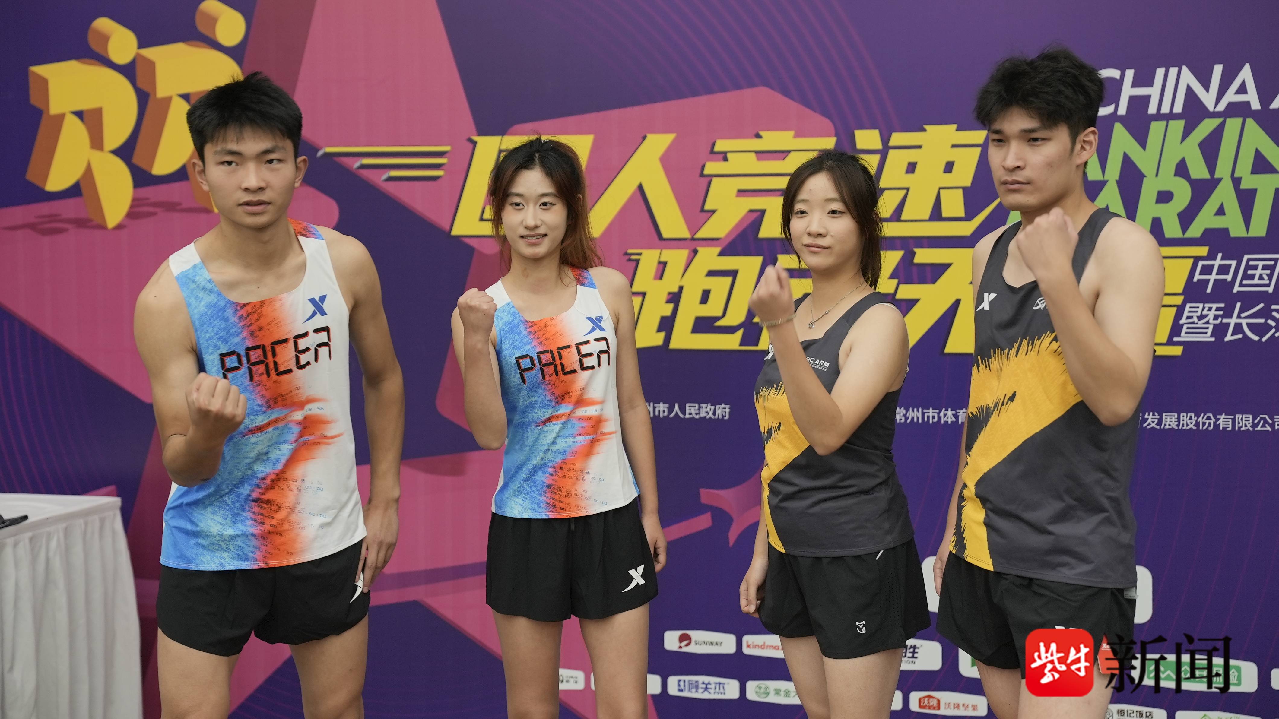 江苏有迈体育发展股份有限公司董事长陶婷婷为大家揭晓了赛事全线物资。赛事服装由特步品牌提供,参赛服为海岩灰色竞技型无袖背心,轻量化速干面料搭配肩部镂空设计,以“荣耀之星”为核心图腾;配速员服装蓝粉渐变色,兼顾透气与时尚。