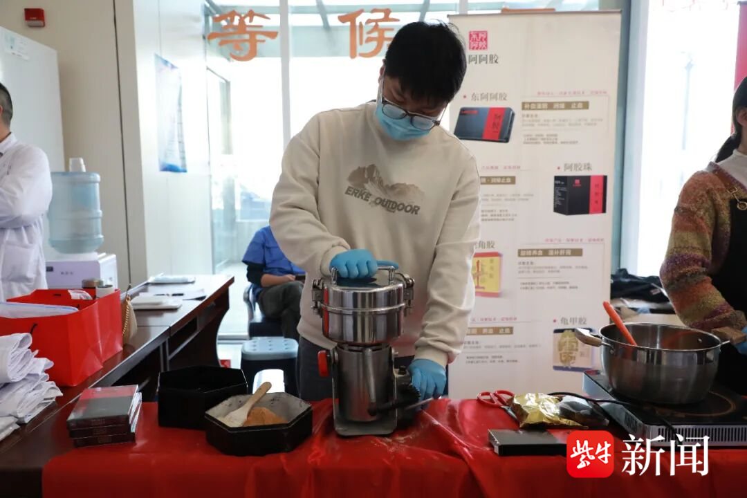 活动现场最吸睛的环节当属制作固元膏。精选阿胶、核桃、黑芝麻等优质原料,在锅中慢慢交融凝结成香甜软糯的固元膏,让市民们近距离感受传统制膏工艺的匠心与精妙。