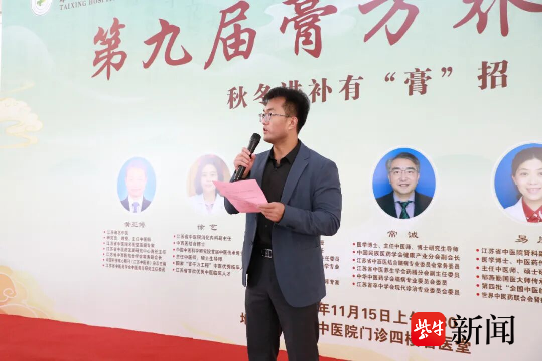 泰兴市中医院院长高斌郑重承诺:医院将始终严把中药质量关,持续满足广大市民的膏方健康需求,积极传播中医药文化,助力全民健康保健意识提升。开幕式由医院党委委员周磊主持。