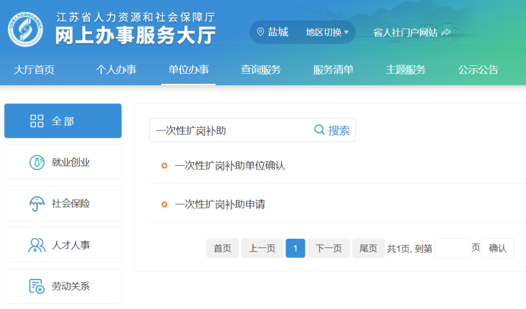 人社部门提醒,如果您的企业符合条件但是没收到确认信息的,也可以线上申请:通过登录“江苏人社网上办事服务大厅”,点击“单位办事”,找到“一次性扩岗补助申请”就可以线上办理了。