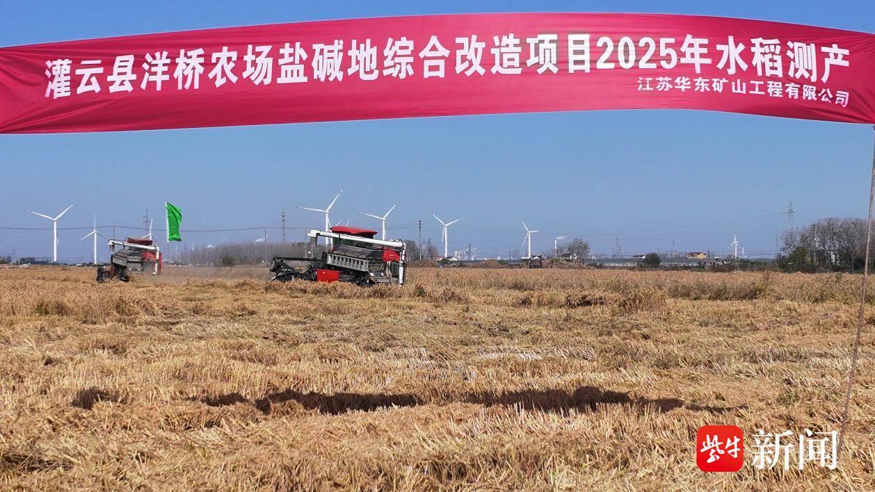 2025年11月19日,由江苏省连云港市灌云县农业农村局三名农技研究员组成的水稻测产验收组,来到位于江苏省地质局实施的灌云县洋桥农场盐碱地综合改造现场,对现场100亩先行土壤改良的试验田水稻进行测产,经过现场测产,亩产达到514.9公斤。