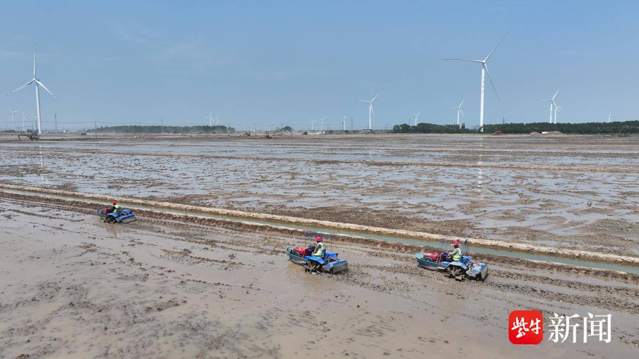 针对该项目区土壤高黏性、高含水率、高盐度且极易返盐等实际特点,项目组打造了 “空天地一体化降盐”新工艺。在空中,利用无人机进行土壤和植物长势监测,严控反盐;在地面,则上演了一场“特种装备秀”:针对高含水量地块,创新性改造非扰动式土地平整设备进行作业,有效避免陷车;在淋盐洗盐环节,采用“晒田-履带拖拉机旱旋-泡田-旋耕船溶盐”的组合拳,打破板结,创造盐分垂直淋溶通道。