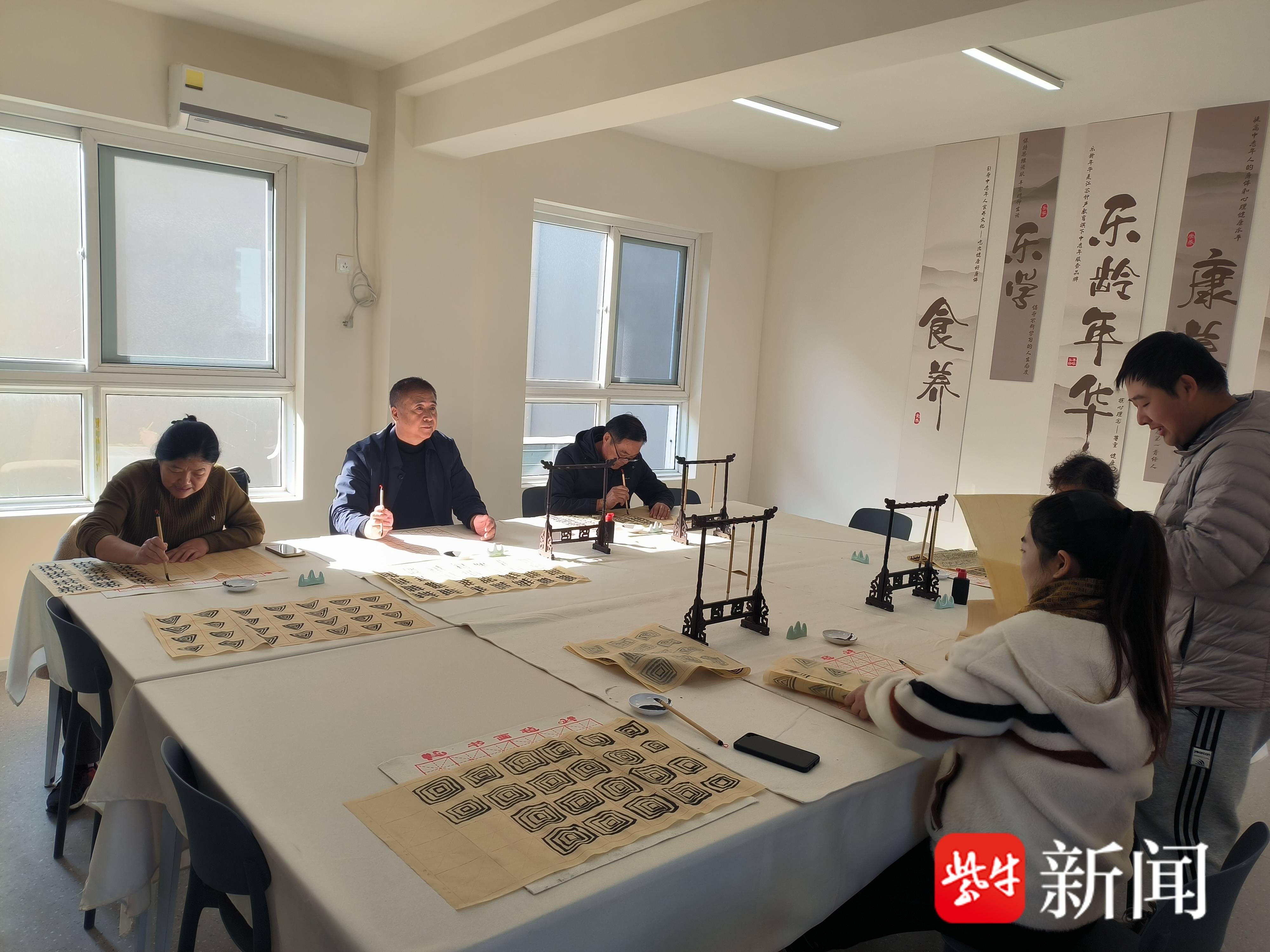 在三楼书法室,裴桂珍正和老伙伴们认真练习毛笔字,桌上的作品已经堆起厚厚一叠。“中午在一楼社区食堂吃营养餐,两荤两素才十几块钱,比自己在家做方便又营养。”她笑着说,下午3点半课程结束,刚好能去二楼接小宝,祖孙俩会在益智室玩一会儿积木或拼图,再一起步行回家,“孩子在身边安全放心,我也交到了不少朋友,儿女们再也不用两头牵挂了。”