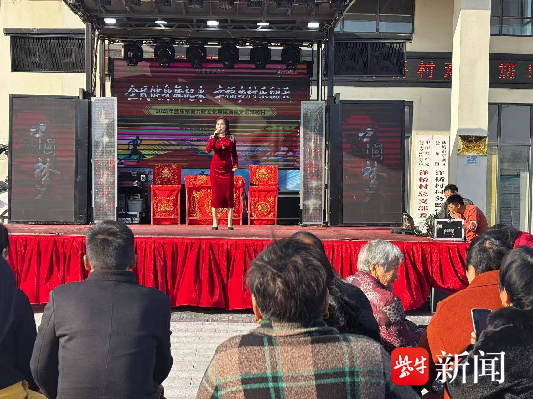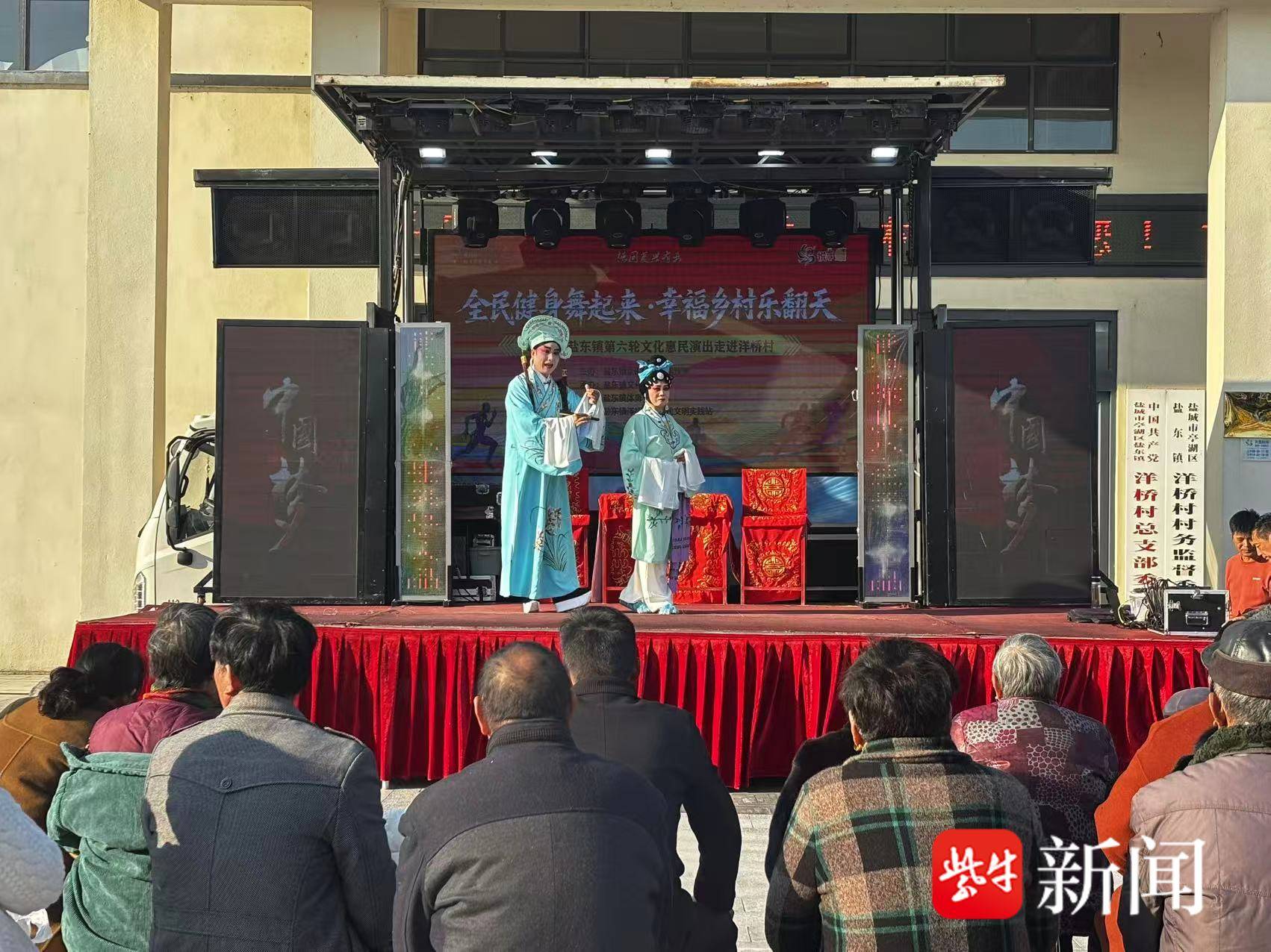 11月20日下午,盐城市亭湖区盐东镇洋桥村新时代文明实践站百姓大舞台广场,人头攒动,热闹非凡,盐东镇第六轮"全民健身舞起来·幸福乡村乐翻天"在这里正在表演。