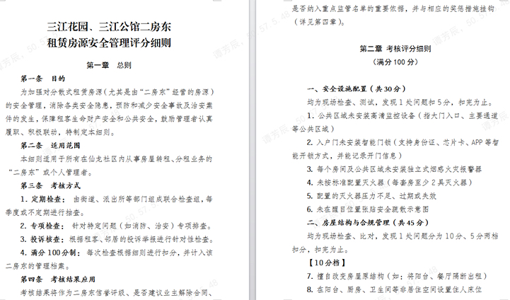 为进一步强化“向优看齐”管理导向,派出所专门联合社区、网格,在听取二房东、租客和周边群众意见的基础上,研究出台了《仙龙社区租赁住房考核细则》,从登记率、隐患数、纠纷数、整洁度等多维度量化方案,选出一批工作配合、管理积极的二房东,在警务公示栏和社区宣传栏,专题表彰优秀二房东和名下高质量租赁住房。