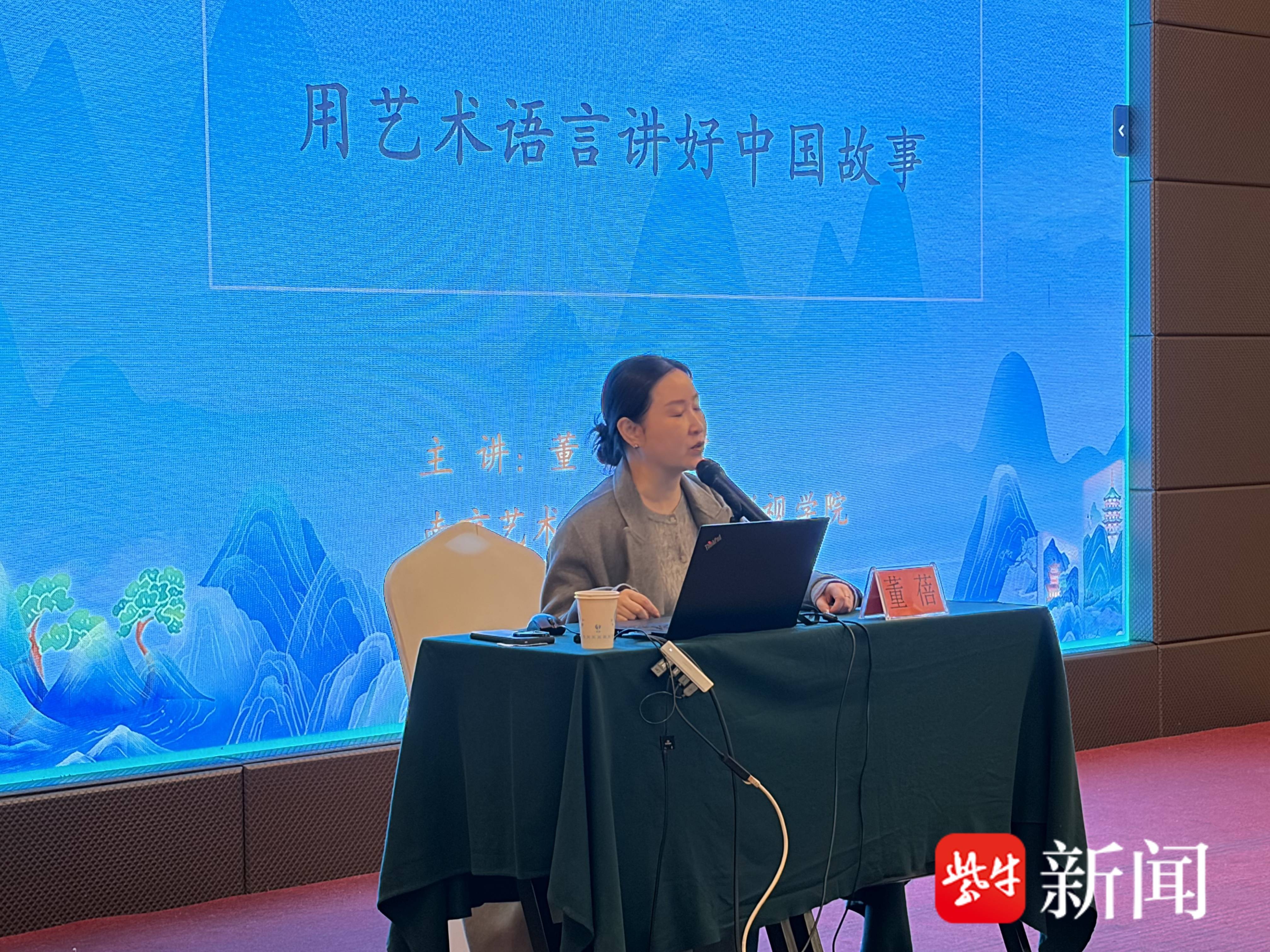 下午的培训堪称艺术与文化的交融盛宴。南京艺术学院戏剧与影视学院党总支书记、教授董蓓以“用艺术语言讲好中国故事”为题开讲,从 “一路‘声’花” 音乐思政课案例切入,深入浅出解析艺术语言创作逻辑。现场,董蓓不仅示范诵读经典篇目,还带领学员开展 “吸气如闻花,呼气如吹灰” 的气息互动练习,气氛热烈。她通过《文化范游长江》融媒作品展示,生动诠释了经典诗词与时代脉搏的结合之道,让中华文化瑰宝在艺术表达中焕发新生。