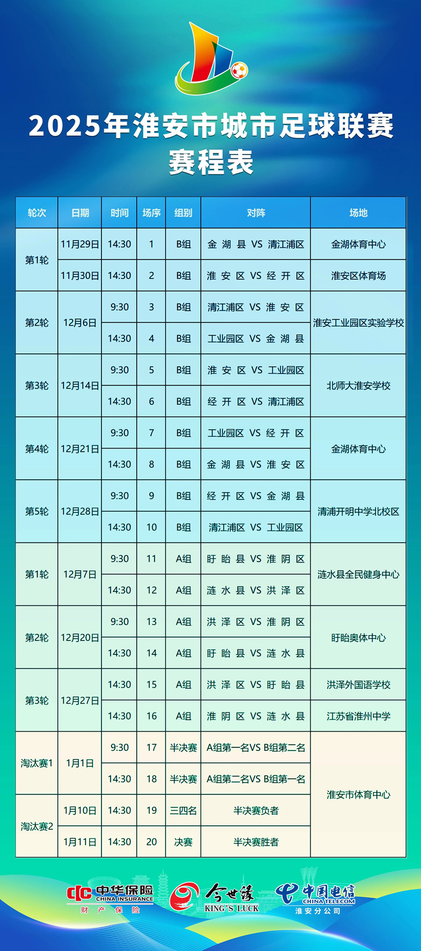 扬子晚报网11月21日讯(通讯员 朱健全 记者 朱鼎兆)2025年“淮超”共分为小组赛和名次赛两个阶段,总赛程为期两个月,共计20个场次,原则上所有比赛均安排在周末……11月21日,2025年淮安市城市足球联赛(以下简称“淮超”)新闻发布会举行,会上公布淮安市城市足球联赛主题口号、形象标识(LOGO)。