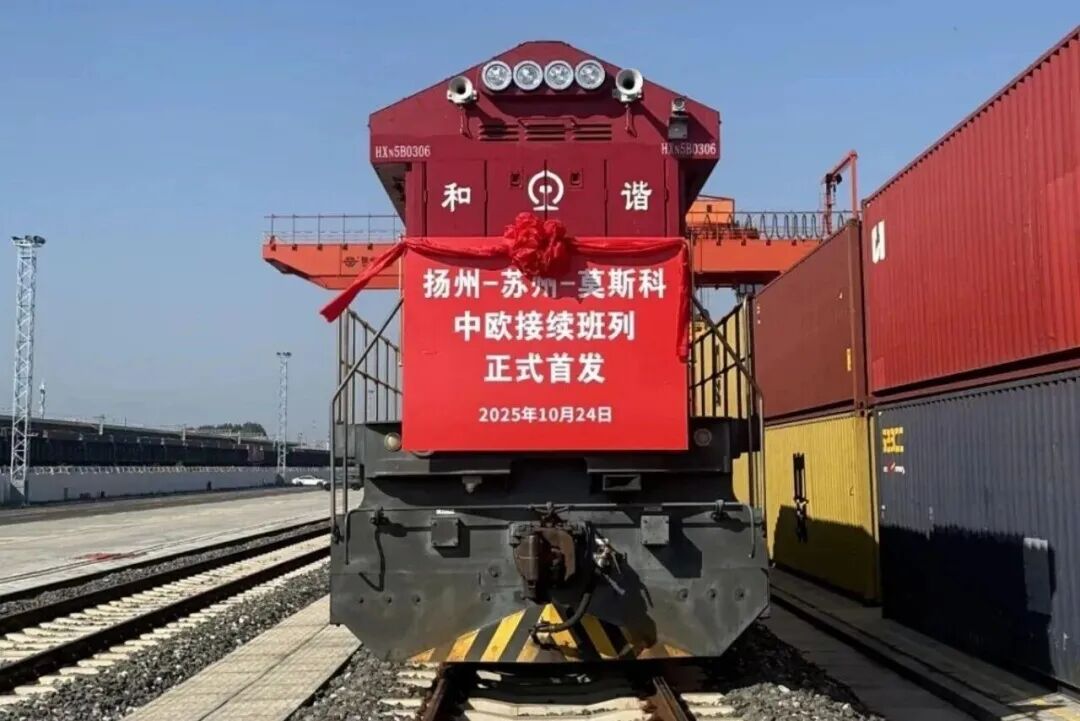 (扬州市中欧接续班列开通运营 来源:“上铁集团”微信公众号)