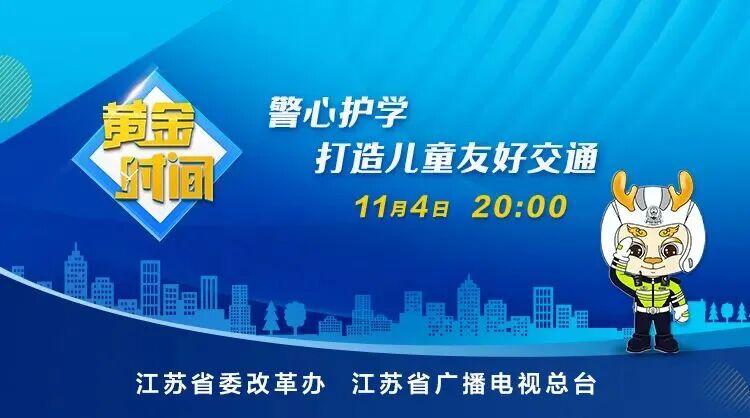由江苏省委改革办与江苏省广播电视总台荔枝新闻中心联合策划的江苏首档大型政策解读节目《黄金时间——改革政策e解读》,11月4日晚8点在江苏新闻频道播出“警心护学打造儿童友好交通”。