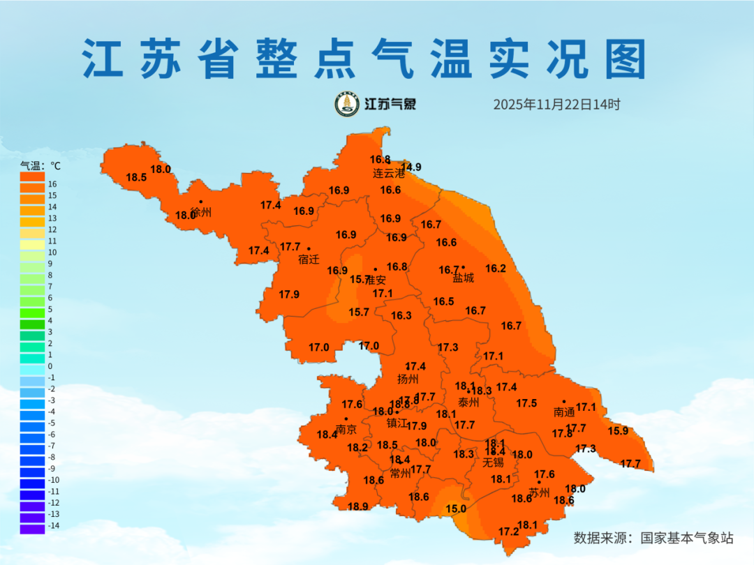 今天白天江苏全省天气晴好