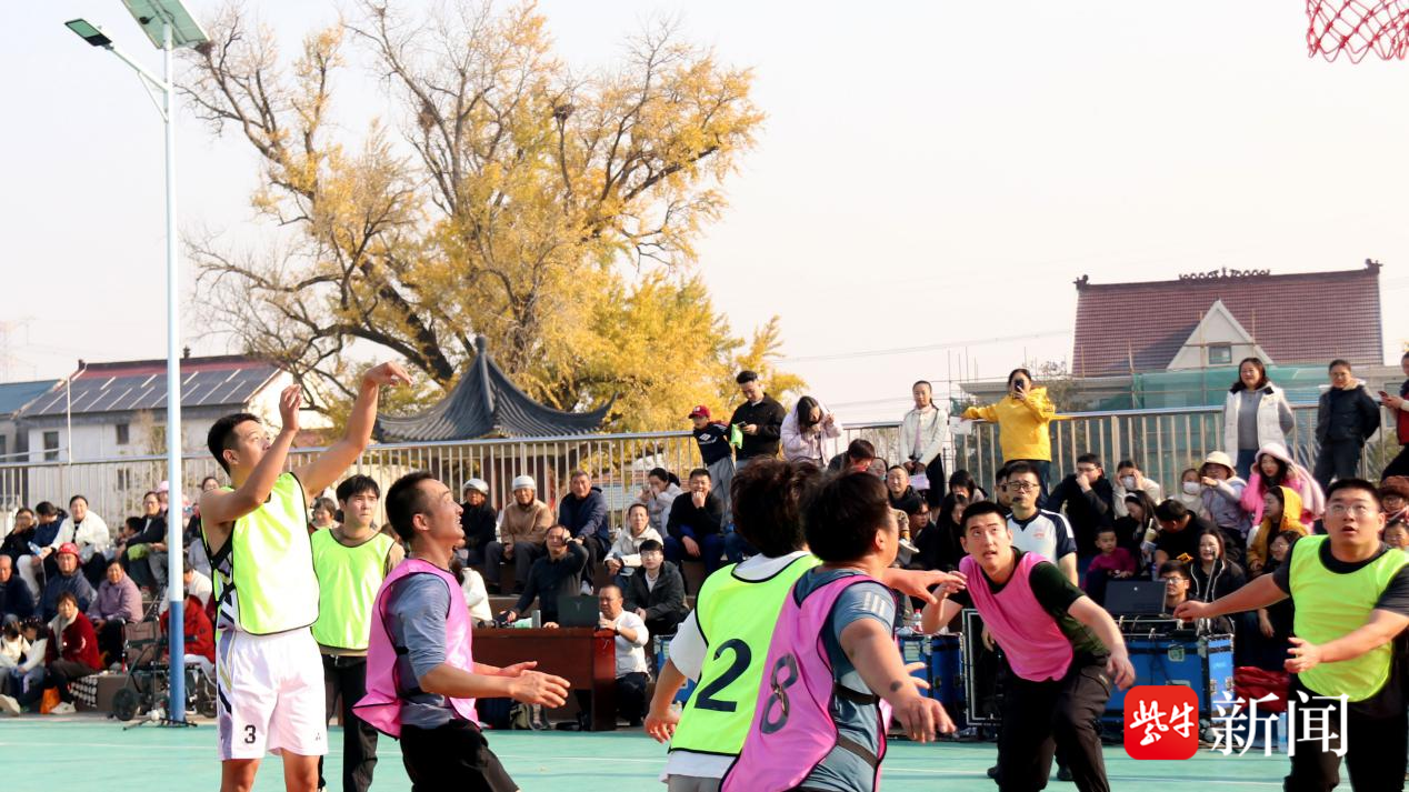 比赛当日,赵元银杏园暖意融融,作为当地“活化石”的千年古银杏树褪去绿装,满树杏黄如烈火燃烧,成为赛场最独特的“背景板”。赛前,4支代表队列队待战、精神抖擞,篮球场四周也早早聚集了由各村、社区村民自发组成的啦啦队,大家手持标语、翘首以盼,现场热闹非凡。