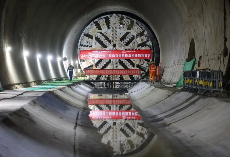 11月21日,开挖直径达9.33米的“宁芜号”盾构机顺利抵达韩府山隧道,标志着宁芜铁路扩能改造工程南京南隧道盾构段成功贯通。