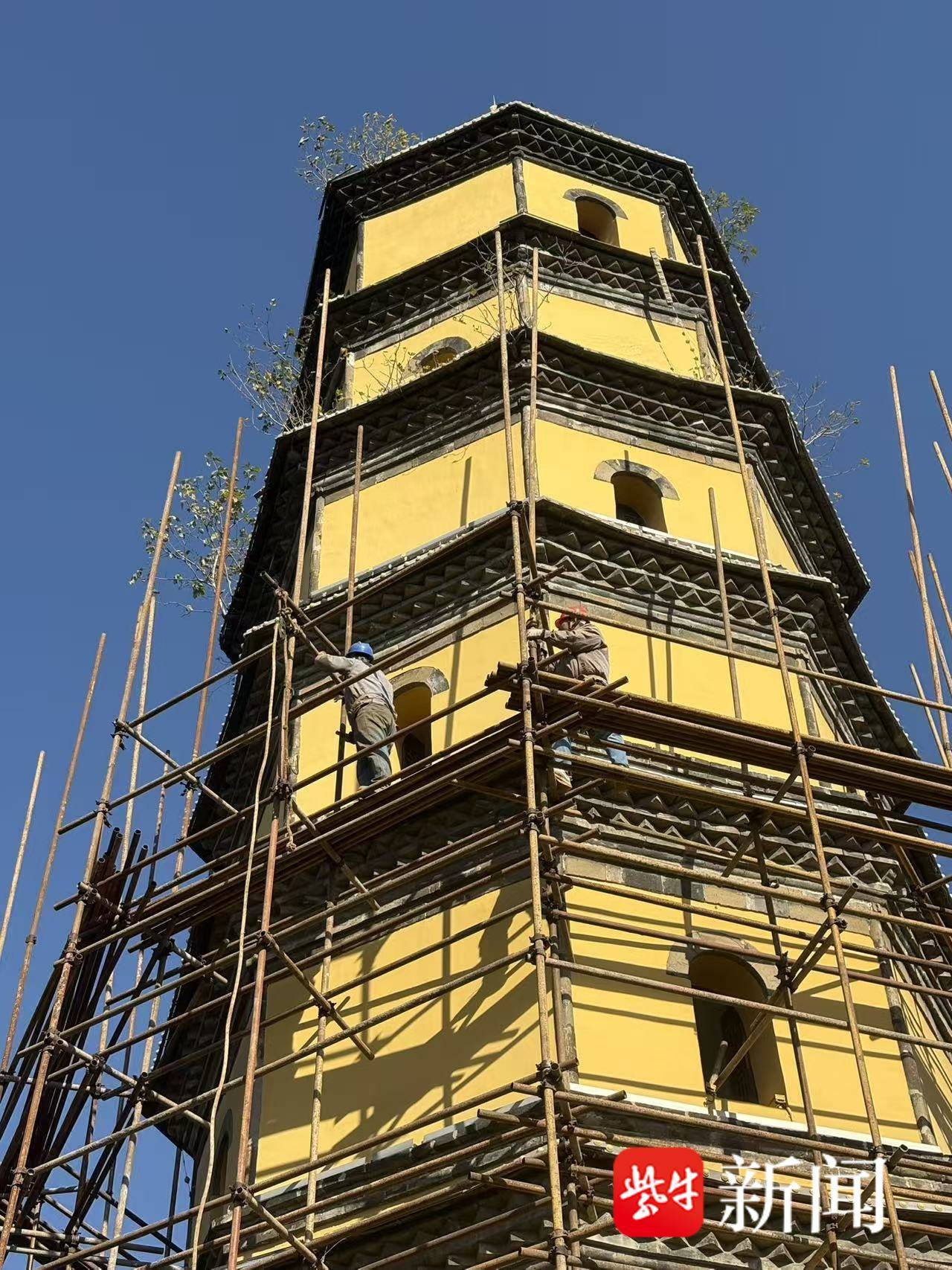 在塔前还贴有今年2月的的告示:因宝塔灯光工程设施老化破损,塔身杂树生长致瓦片松动,有物体高空坠落的危险。为保障大家的游园安全,塔院临时关闭,预计年底修复后开放。