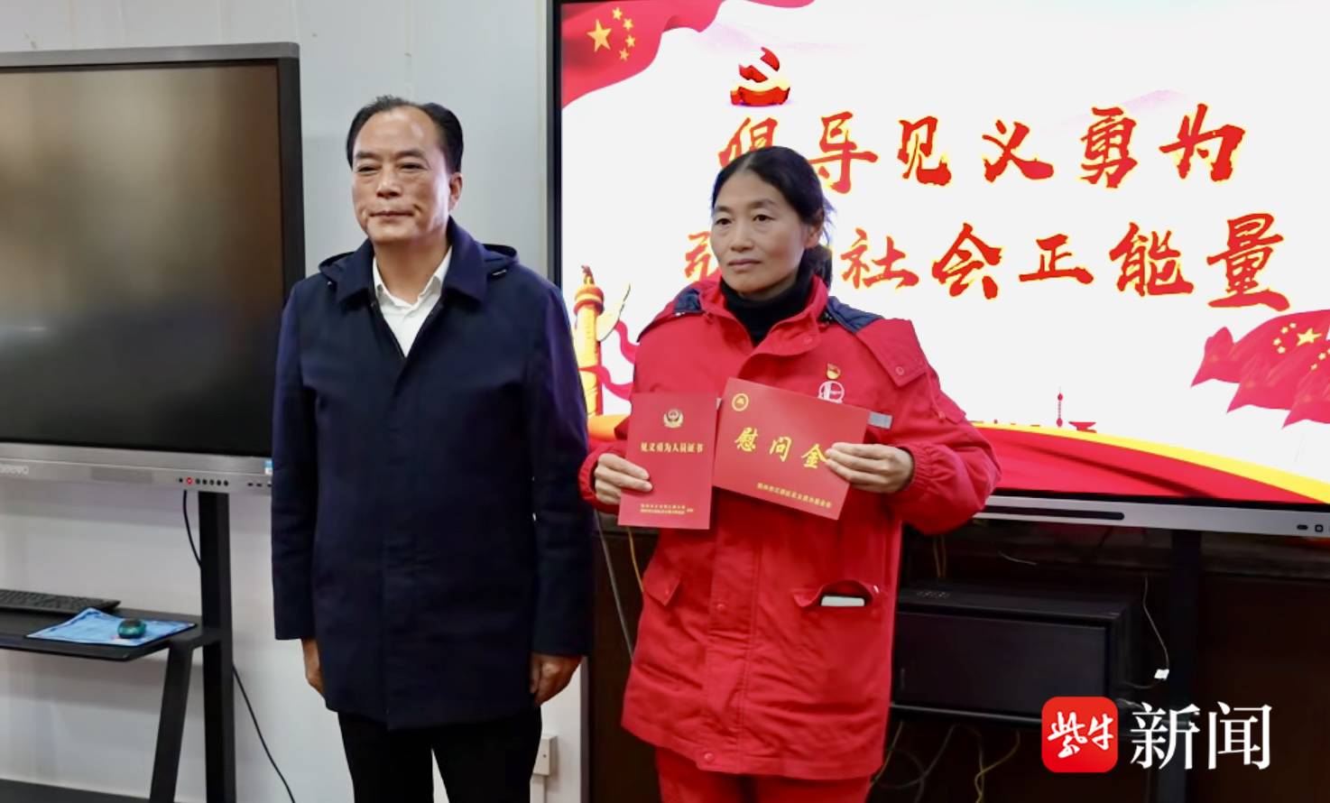 记者注意到,现场更令人动容的,是张海燕接下来的举动——她当场宣布,把此次获得的见义勇为奖金全部捐给当地敬老院。“救孩子是本能,敬老人是本分。”张海燕说:“爱心需要传递。我希望这份心意,既能爱幼,也能敬老,让这份奖励发挥更大的价值。”