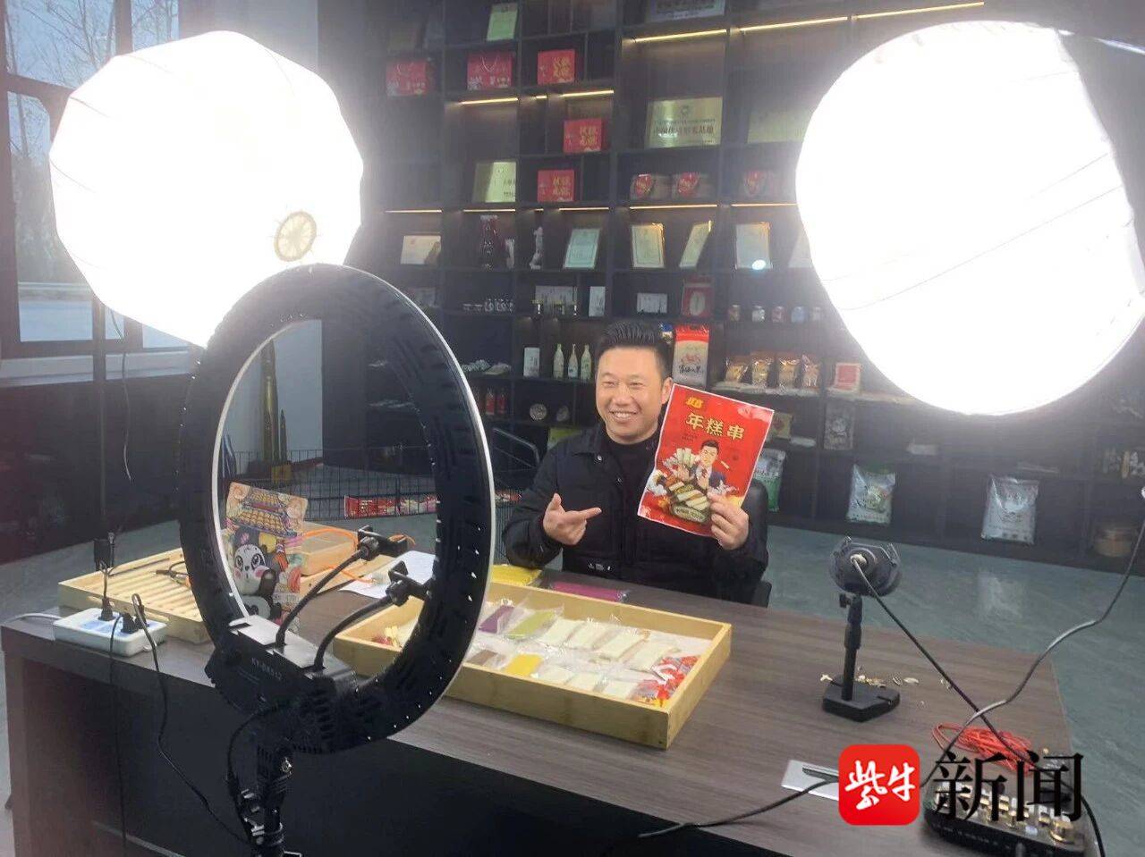 创业初期,沈祥容便斩获佳绩。2009年,他仅用五个月时间,就让射阳县沈氏农副食品加工有限公司从蓝图变为现实。第一年制作年糕10万箱,400多万元的销售额让这个初创企业站稳了脚跟。但传统销售模式的局限很快显现,线下渠道窄、品牌影响力弱让企业陷入瓶颈。正当他一筹莫展之时,我县获批“国家级电子商务进农村综合示范县”的东风吹来,县镇村三级物流、公共服务、流通服务和人才培训等四大体系为企业发展注入了强劲动力。在政策扶持下,沈祥容成立电子商务公司,深度融入“农产品进城、工业品下乡”的双向流通格局,网络销售额实现飞跃式增长,一举突破1400余万元。他还积极参与县内组织的电商培训,从短视频营销到直播带货,从场景搭建到话术设计,将所学知识转化为实实在在的销售业绩,成为县域电商发展的标杆。