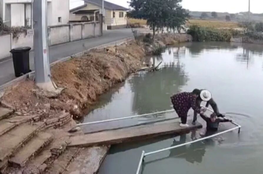 今年10月27日上午,57岁的吴大姐像往常一样,提着蔬菜到塘边清洗。刚走到跳板前沿,却没想到脚下一滑,整个人扑通一声掉进了水里。