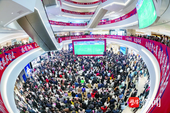 11月1日,南通万象城商场内巨型屏幕直播着“苏超”决赛,数千名球迷齐聚于此。每当南通队发起进攻,呐喊声震耳欲聋——这不是传统的体育场,而是崇川区打造的“第二现场”。