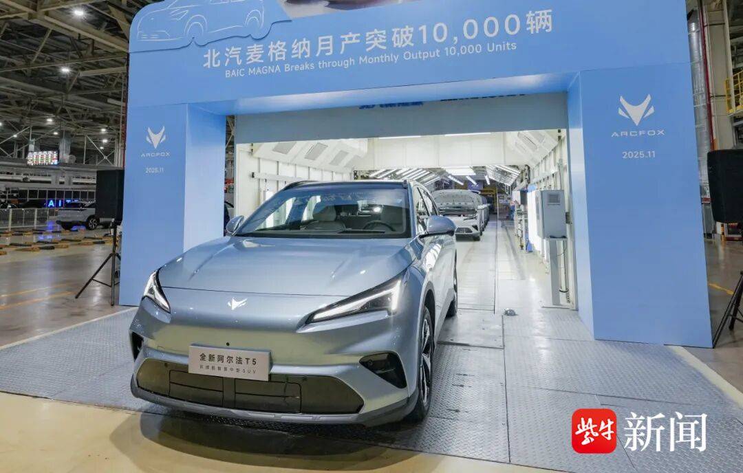 扬子晚报网11月28日讯(通讯员 胡睿 蒋余承诺 记者 万凌云 姜天圣)11 月 26 日 17 时许,北汽麦格纳总装车间内掌声雷动,随着一辆 “极狐 全新阿尔法 T5” 缓缓驶下最终生产线,北汽镇江基地正式实现单月产量突破 1 万辆的历史性跨越,标志着企业生产能力与运营效率迈入全新发展阶段。