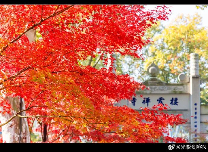 栖霞寺,秋枫红 摄影:@光影剑客N