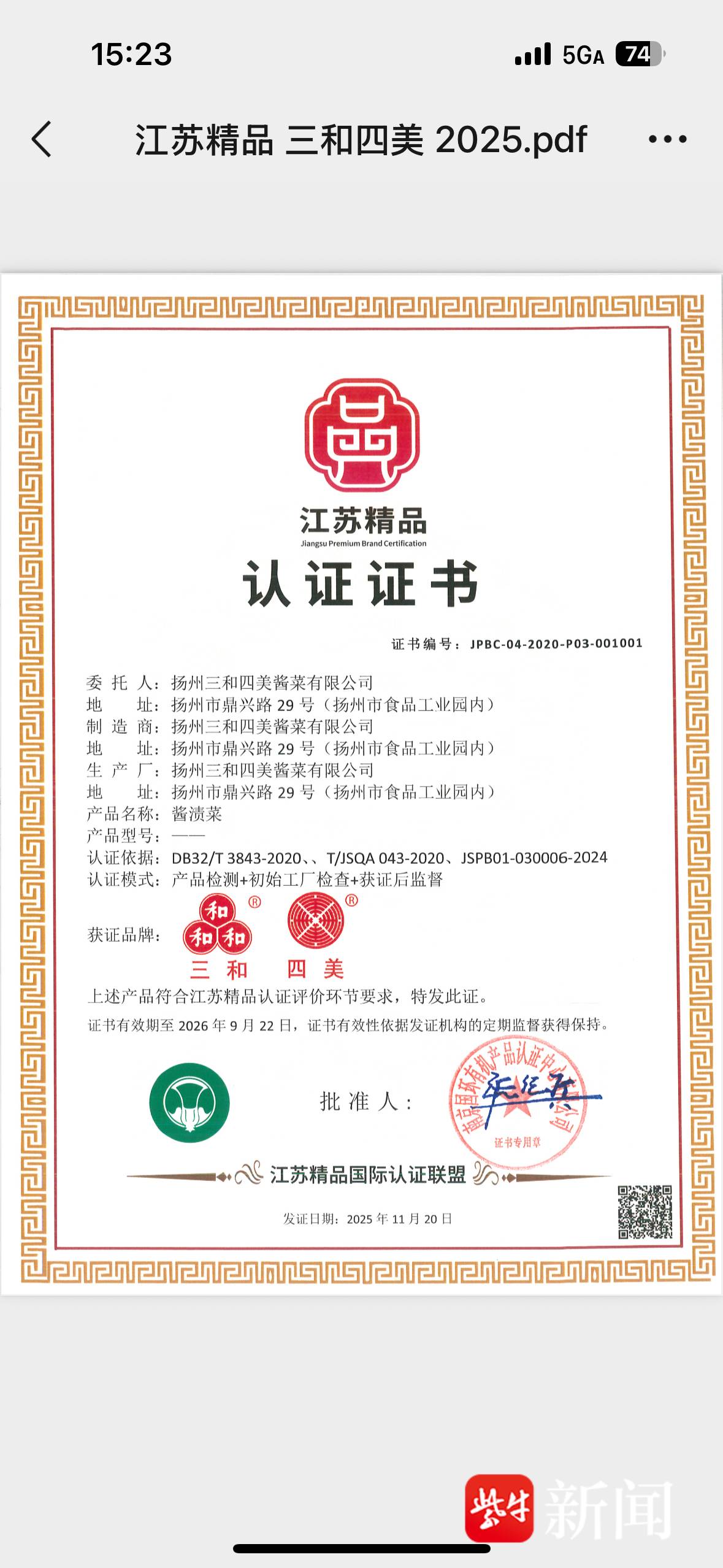 荣膺“江苏精品”认证,既是对两家老字号品质的权威认可,更是推动传统产业升级的新起点。“这罐酱菜里装着的不仅是滋味,更是代代相传的匠心。” 三和四美公司质管部经理王栋介绍,厂区内数稀甜酱发酵车间见证着传统工艺的延续,而切制、灌装车间的标准化操作则展现着现代管控的严谨。