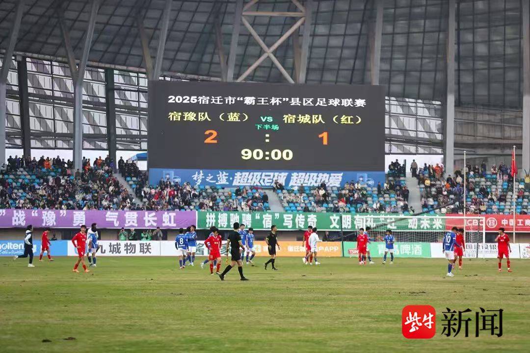 11月30日下午,2025宿迁市“霸王杯”县区足球联赛决赛在宿迁梦之蓝・奥体中心激情开赛。决赛哨声响起的那一刻,整座奥体中心沸腾了。