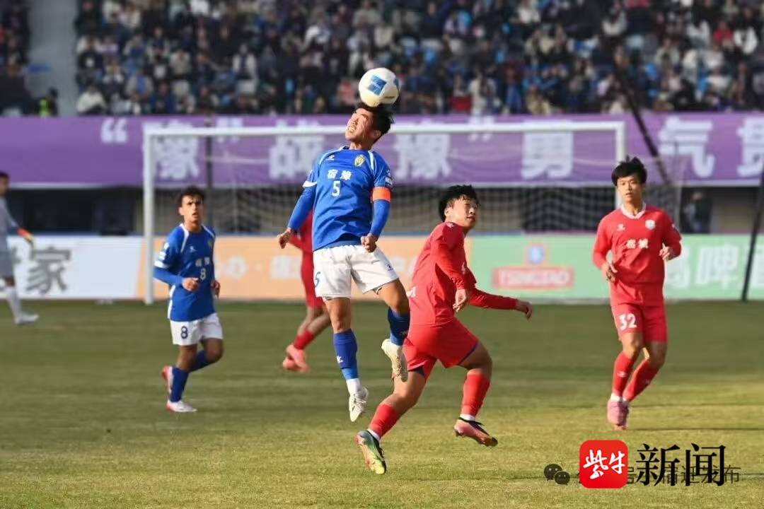 下半场补时阶段,宿城队获得点球机会,宿城队8号球员卜飞扬担起重任,果断起脚飞射,足球应声入门,为宿城队扳回一分。当主裁判吹响全场比赛结束的哨音,比分定格在2∶1,整个宿迁梦之蓝・奥体中心也成为一片沸腾的海洋。