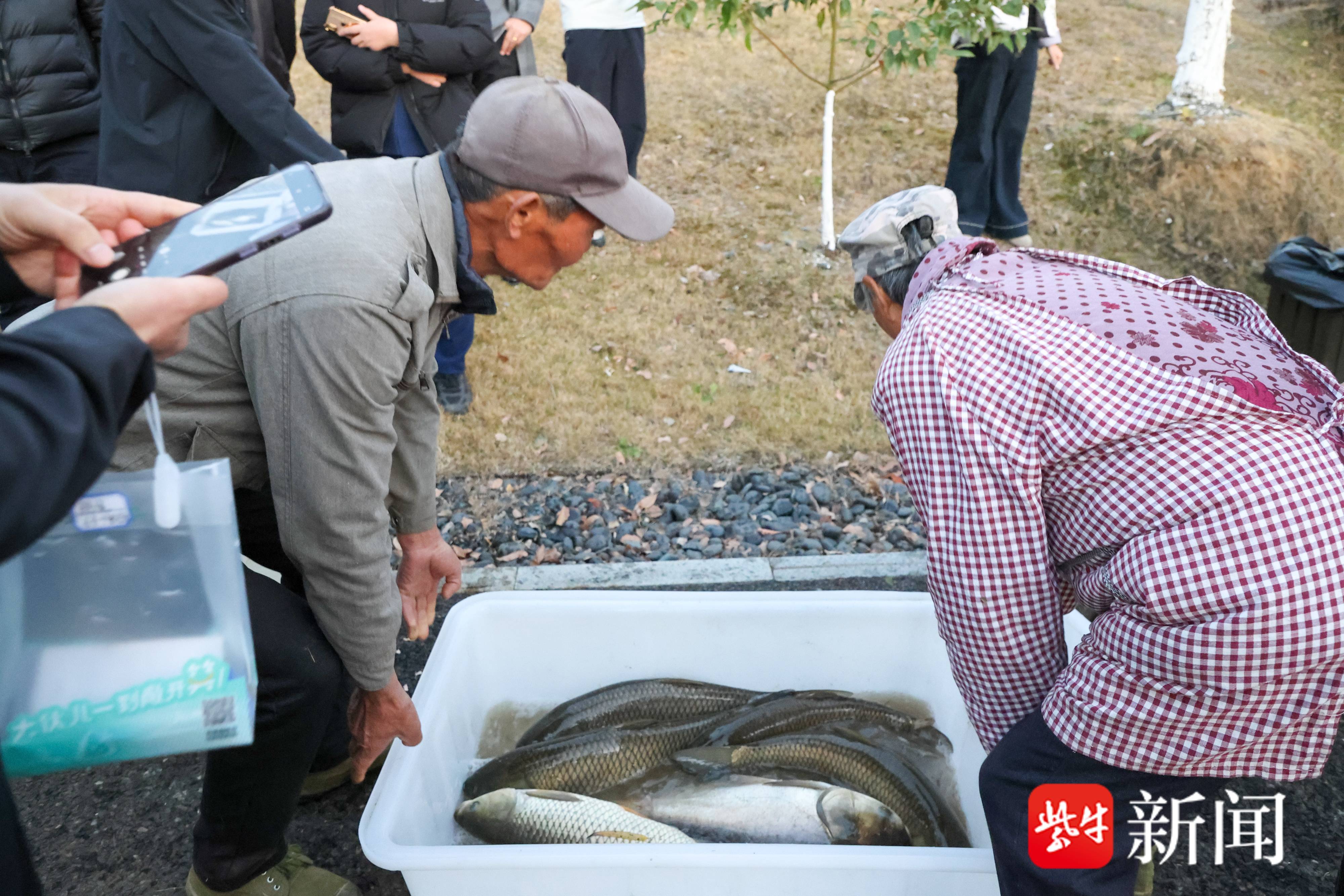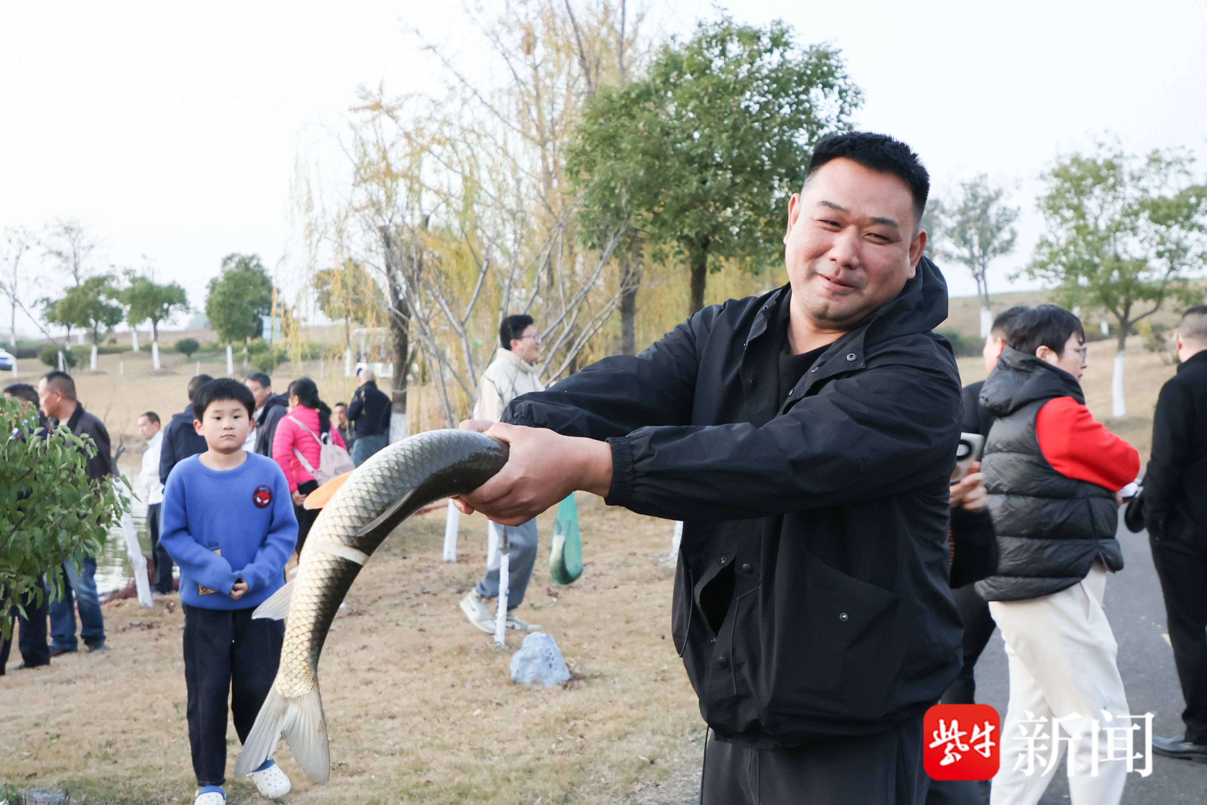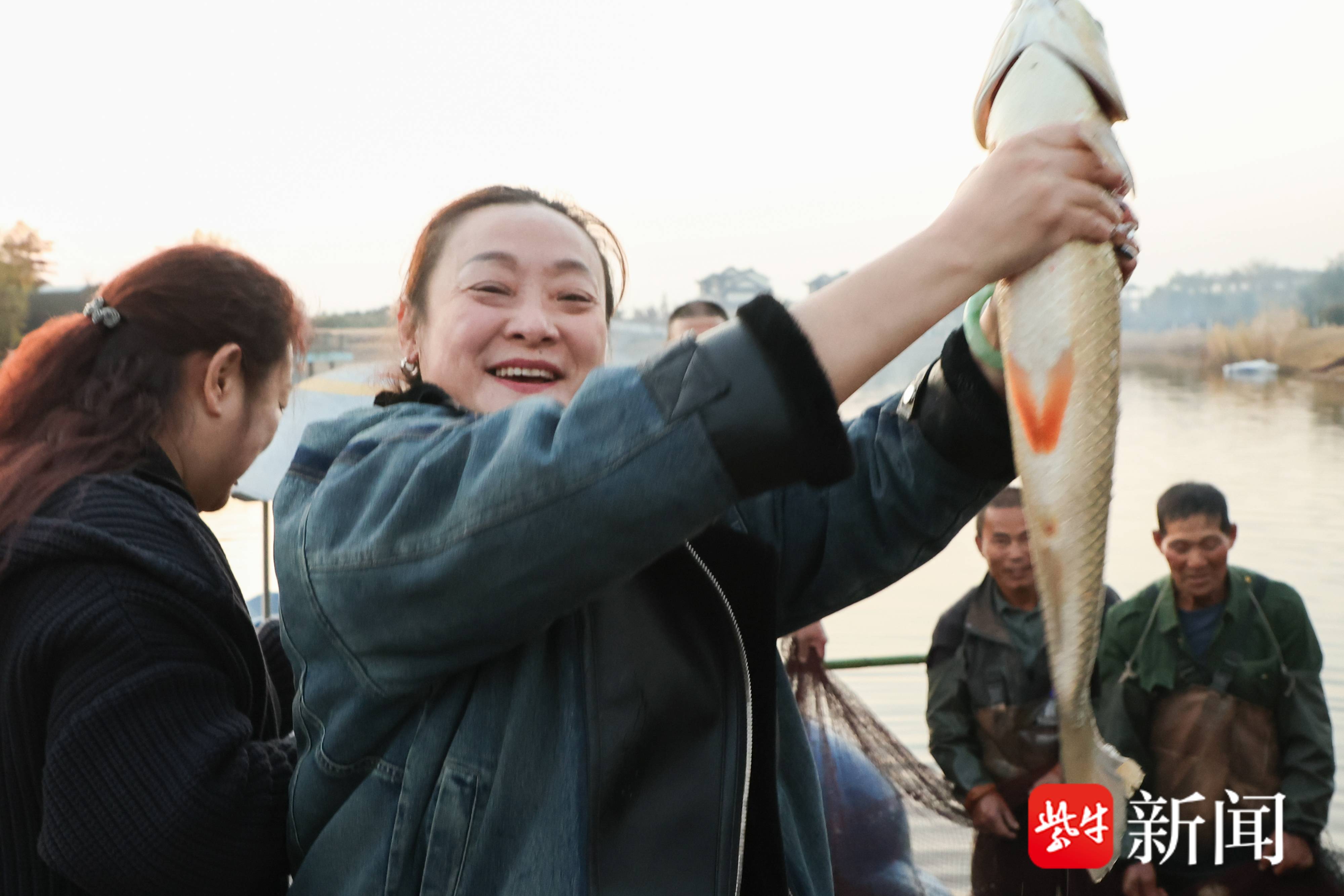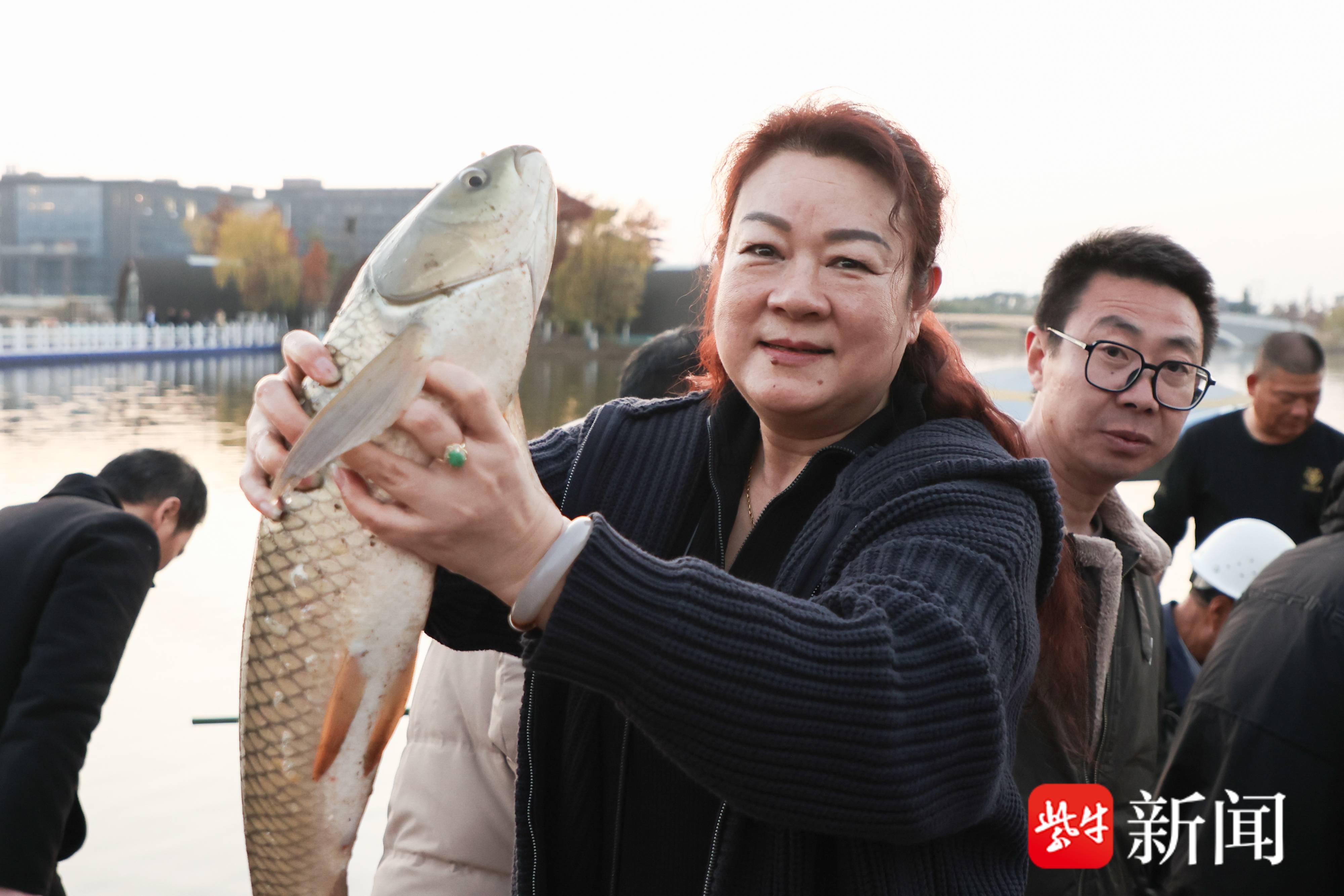 随后,湖畔“生态鱼市”正式开市!刚出水的湖鲜被整齐码放在售卖台上,游客们纷纷选购:“这条花鲢足有二十斤重!给我来一条,晚上红烧!”“这鱼好,炖汤绝对!”