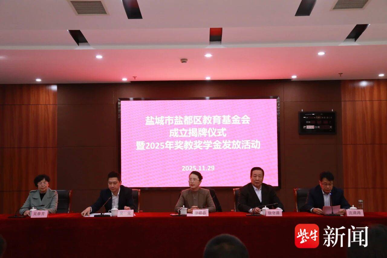 2025年11月29日上午,盐城市盐都区教育基金会成立揭牌仪式暨2025年中高考奖教奖学金发放活动在南京师范大学盐城高级中学隆重举行。盐都区副区长陈晶晶,区原政协副主席、江苏宏大集团董事长、区教育基金会发起人徐守清,盐都区委教育工委书记、区教育局党委书记、局长沈清涛等领导出席活动,与全区受表彰的师生代表、各学校负责人及各界嘉宾共同见证了这一重要时刻。