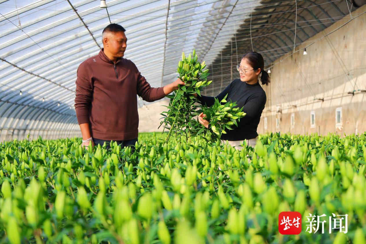 据了解,此次采收的百合花品种名为“索蚌”,是园区于今年9月份精心栽植的。与传统种植方式不同,26号大棚采用了“一球双芽”的新种植技术,即一个种球培育出两个芽苗,再进行种植。这一技术的应用,使得26号大棚仅种植了6000个种球,就达到了预期的种植效果,相比常规种植方式,种球用量减少了一半,节省了不少成本。“一球双芽的种植方式,不仅提高了土地利用率,还增强了植株的抗逆性,使得百合花的品质更加优良。”魏建东说道。从目前的种植情况来看,“索蚌”百合花生长状况良好,花苞饱满,已经陆续进入成熟期。