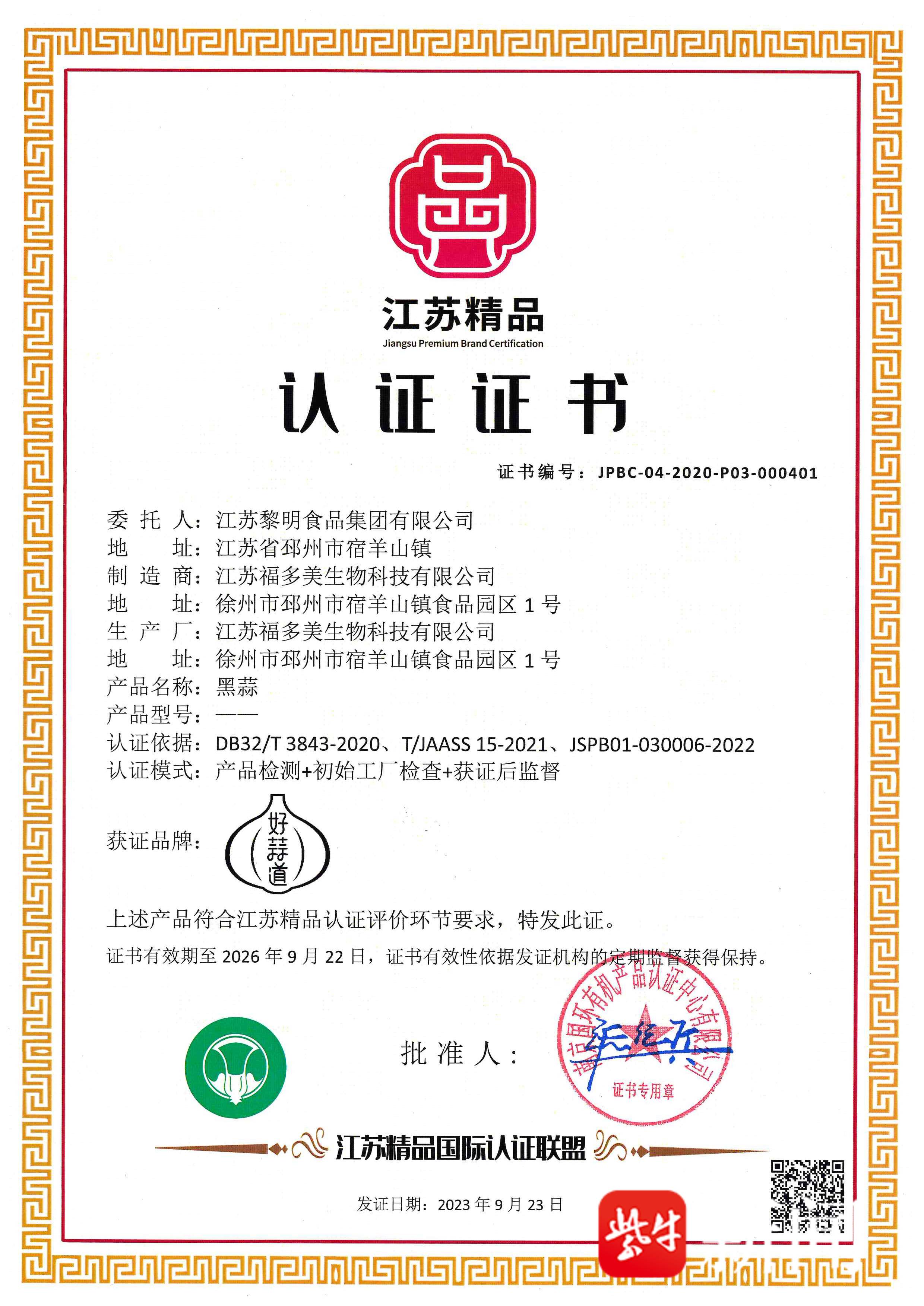 同时经营多种农副产品,并已形成“买全球,卖全球”新格局的黎明食品,同样将品质坚守融入发展血脉。公司作为重点企业参与了黑蒜国家标准的制定,并凭借过硬的质量将产品远销欧洲、东南亚、北美、南美等六十多个国家和地区。在“扎根乡土、坚守匠心、勇于创新” 的道路上,黎明食品已成为“江苏精品”在蒜制品细分领域的示范者和引领者。