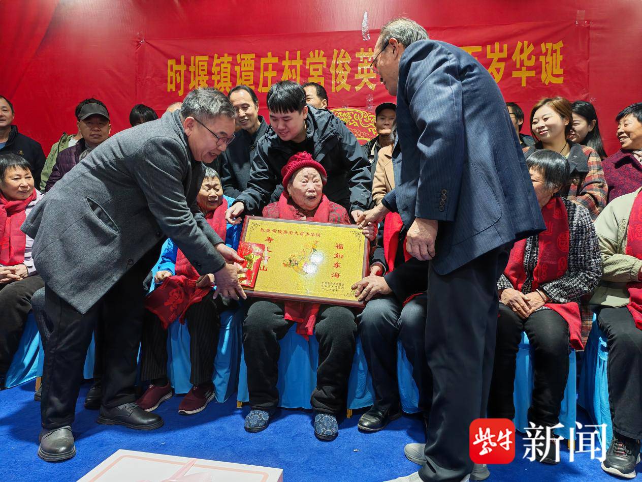 时堰镇谭庄村百岁老人常俊英福寿现场