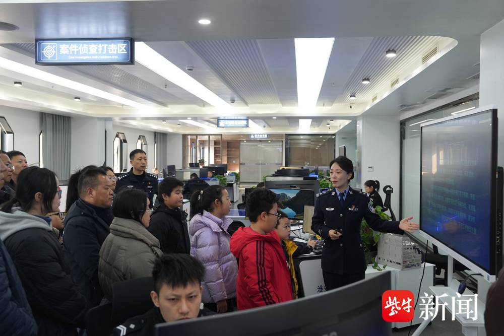 开放日不仅聚焦大型广场互动,更拓展了“警营深度游”维度。市、县(区)公安机关联动,邀请党代表、人大代表、政协委员、企业家代表、警风警纪监督员、民警家属及市民代表,走进110接处警中心、交警支队交管指挥大厅、刑警支队反诈中心、警史馆等警种部门,近距离观摩公安工作流程,直观感受淮安公安在科技强警、规范执法、便民服务等方面的显著成效。“从接警调度到案件办理,从交通管理到政务服务,每一个环节都体现着公安队伍的专业与担当。”企业家代表李先生在参观后表示,淮安公安机关营造的一流法治化营商环境,让我们企业发展更有安全感、更有信心。