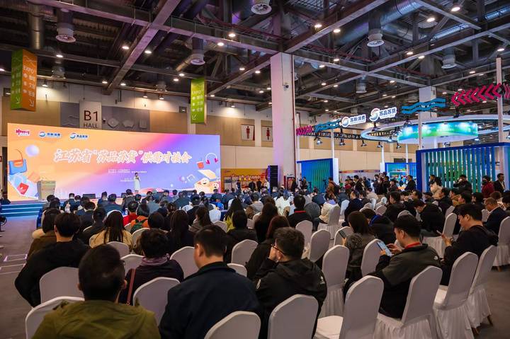当天下午,江苏省“苏品苏货”供需对接会同步举行,京东、淘天、抖音、唯品会等全国百余家平台和采购商参加,京东、淘天、中石化、苏宁易购、天虹等企业发布采购计划和赋能措施,科沃斯、好孩子、墨觉科技、一号农场、绣娘丝绸、东海穿戴甲、魔法原子等全省200多家“苏品苏货”实力企业参加对接会并推介核心产品。在“苏品苏货新消费会客厅”环节,南京信息工程大学江北新区发展研究院院长丁宏与美团、抖音、歌林商业集团、吾悦广场等企业代表围绕即时零售、流量运营、消费趋势及一线实战经验等话题共话消费新趋势。