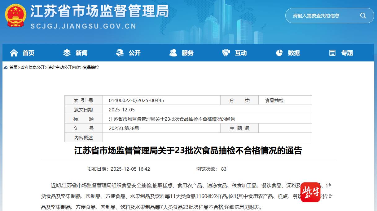 12月5日,江苏省市场监督管理局发布了关于23批次食品抽检不合格情况的通告。其中涉及扬州3家商户不合格。
