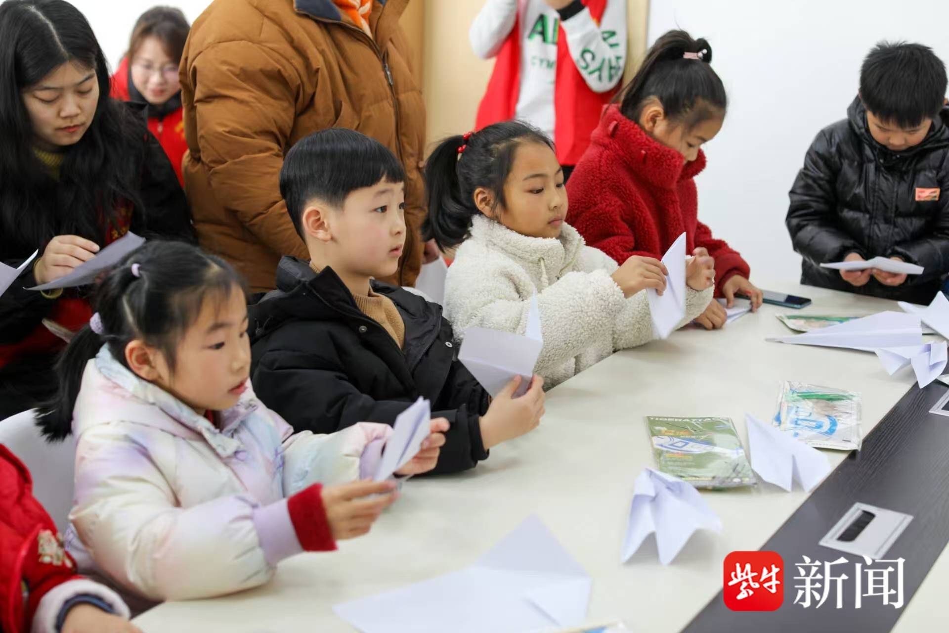 “来,咱们试试优化机身、机翼结构,让飞机飞得更远。”面对孩子的惊呼,志愿者耐心演绎飞机的不同折法,普及空气动力学、斜坡气流原理,为大家解开实验背后的“飞行玄机”。随后,大家化身“小工程师”,尝试折叠“银河战斗机”“滑翔机”“歼—35A”等飞机,不时调整机翼和配重,观察飞行路线。