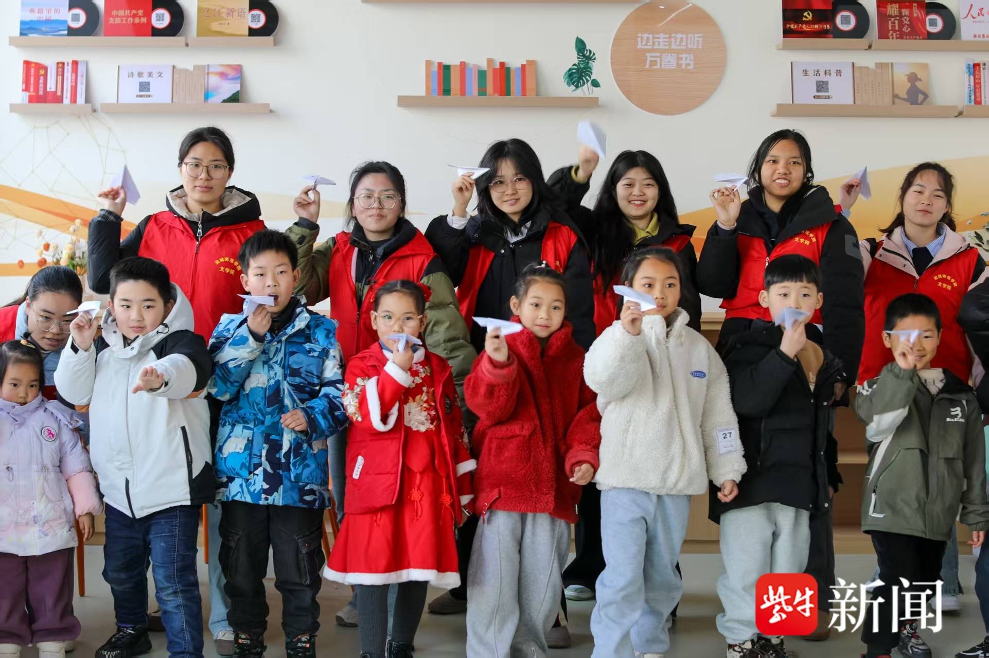 再一次回到座位上,孩子们的心中却多了新问号:“投掷飞机前为什么要哈口气?”“航天器是怎样飞起来的?”……志愿者一一解答疑问,并以《折纸飞机的男孩》钱学森爷爷的故事为引,向大家阐释科学家精神,讲述中国航天从筚路蓝缕到九天揽月、从“地月系”到“行星际”的跨越之路。教学视频里,播放着神舟二十一号载人飞船发射升空,返回舱着陆成功的精彩视频,活动现场瞬间沸腾。