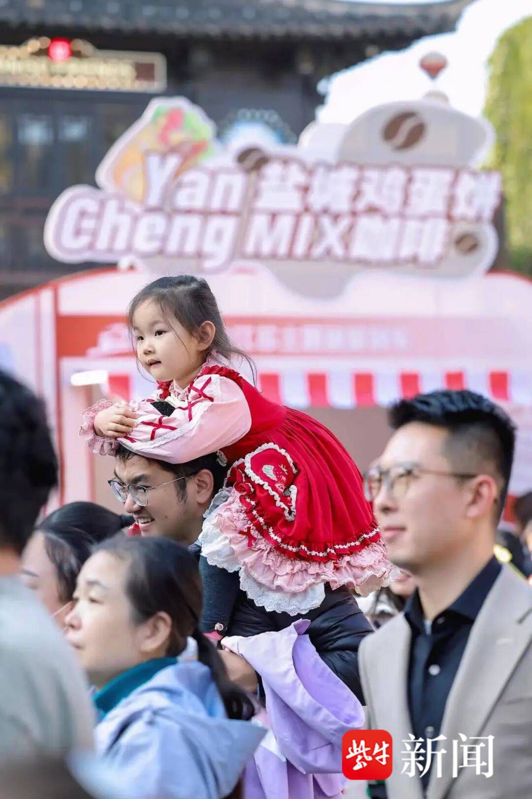 现场20余幅精选摄影作品组成视觉长廊,湿地精灵麋鹿、丹顶鹤、勺嘴鹬的灵动姿态,世界遗产地的壮阔风光,淮剧、发绣等非遗场景,以及城市地标的现代风貌,每一幅画面都诉说着盐城的独特底蕴。盐城文旅专属市集人气高涨,“盐城鸡蛋饼+YAN CHENG MIX咖啡”的创意组合鲜香诱人,以麋鹿、丹顶鹤、勺嘴鹬为原型的文创潮玩,融合生态元素与现代审美,成为年轻人追捧的热门单品;麋鹿IP人偶“阿盐”“LUGOGO”憨态巡游,与游客合影互动、派发定制贴纸和明信片,让盐城文旅形象更显鲜活温暖。