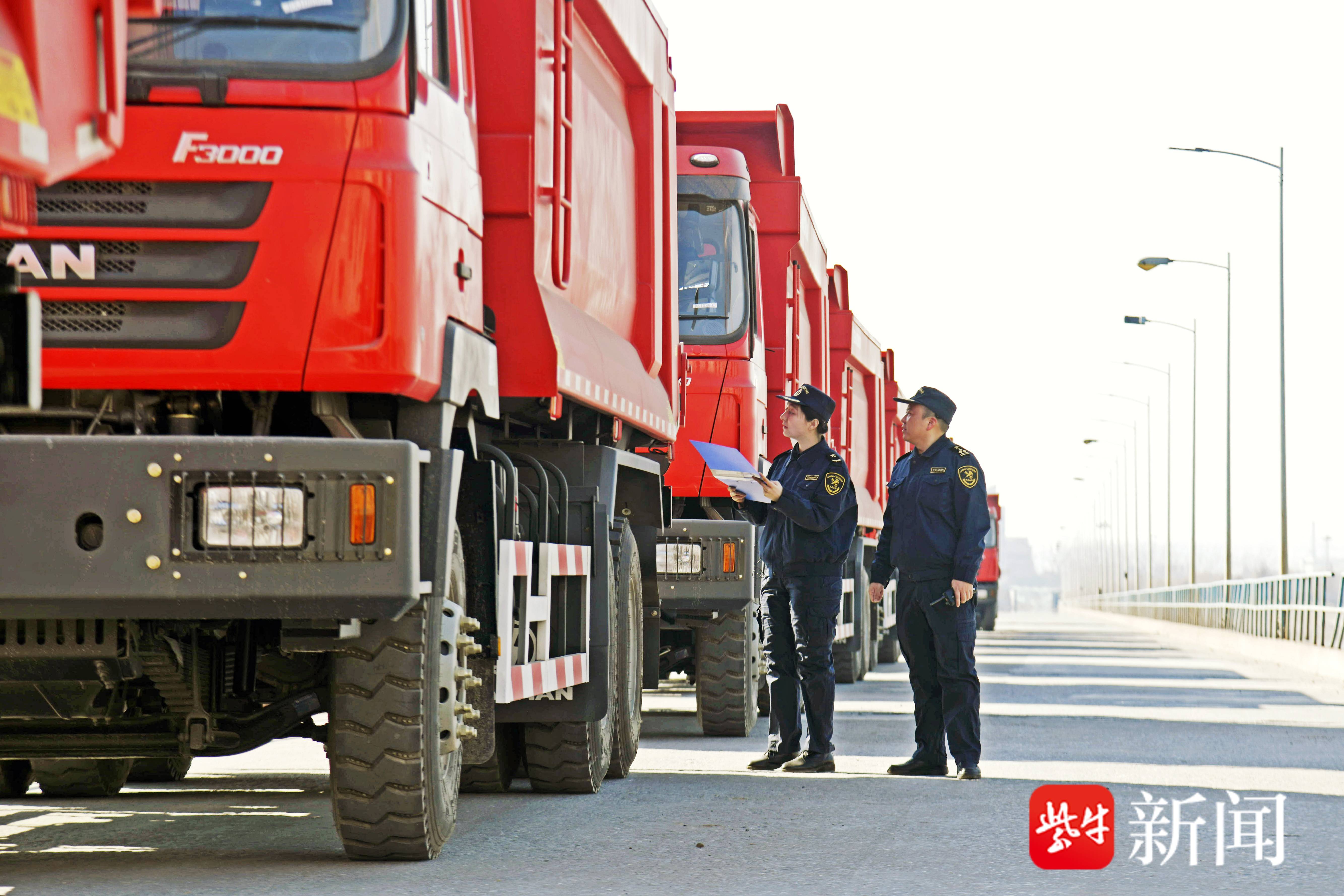 关员在常州港监管工程车出口