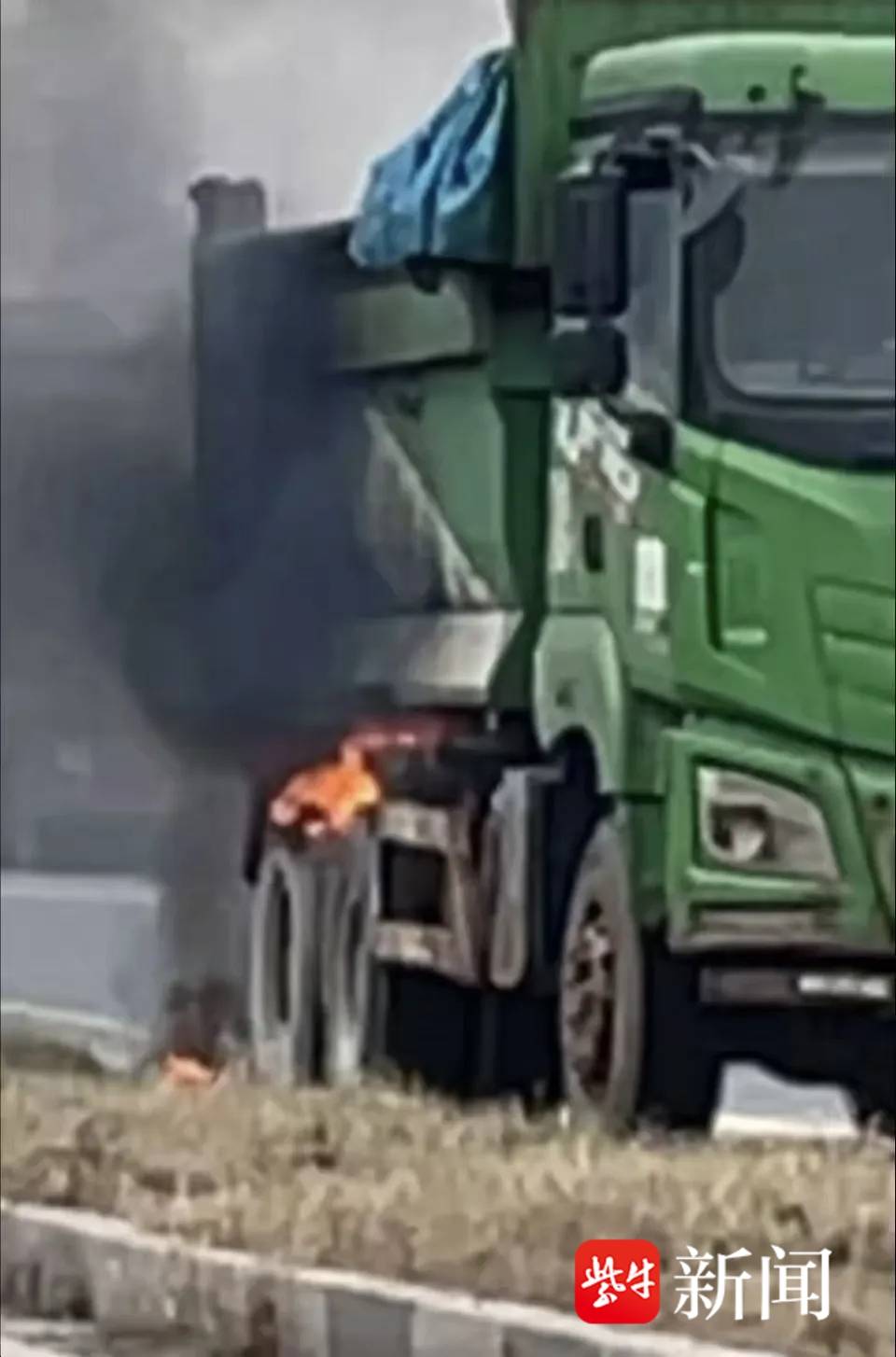 12月7日中午12点左右,连云港市立东方医院徐圩分院急救站点医护人员车海玲、丁超与驾驶员武心浩正驾驶急救车完成任务返站,当车辆行至连云港公路港附近时,路边一辆重型自卸卡车的异常情况瞬间牵动了三人的神经 —— 卡车后轮正冒出滚滚浓烟,明火已开始蔓延。